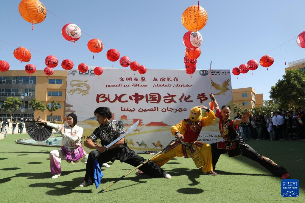 當(dāng)日,開羅巴德爾大學(xué)在校園內(nèi)舉辦中國(guó)文化節(jié),現(xiàn)場(chǎng)不僅有中國(guó)書法、剪紙、手工藝品等展臺(tái),也有中國(guó)武術(shù)表演、傳統(tǒng)民族服飾展秀、美食制作等活動(dòng),吸引眾多學(xué)校師生參與。