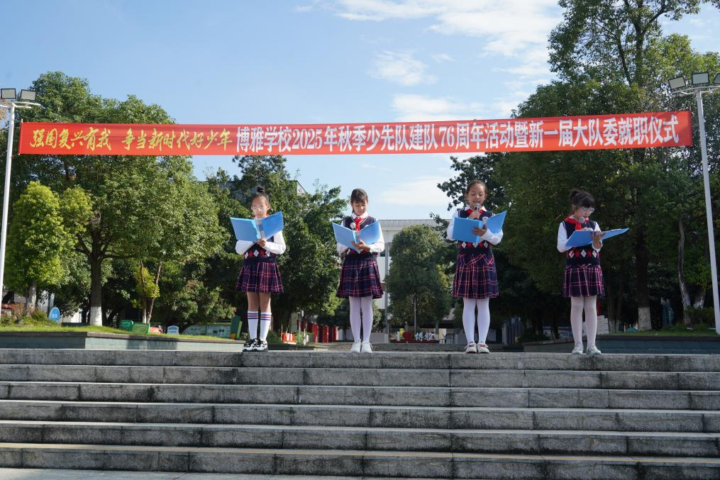 10月13日,該校舉行了建隊日慶祝活動暨新一屆少先隊大隊委就職儀式,讓少先隊精神不斷在博雅少年心中扎根,讓紅色基因一代一代傳承。