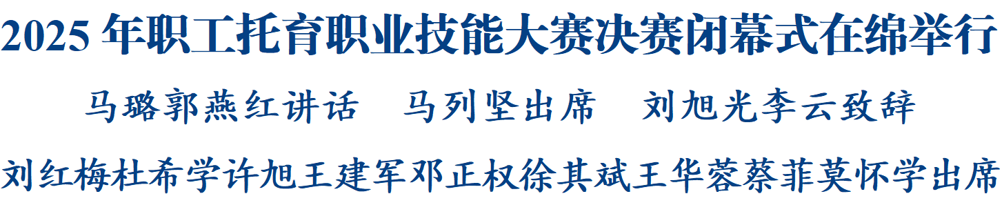 10月23日,以“‘托’成長(zhǎng)希望·‘育’美好未來(lái)”為主題的2025年職工托育職業(yè)技能大賽決賽閉幕式在綿舉行。全國(guó)總工會(huì)副主席、書(shū)記處書(shū)記、黨組成員馬璐講話并宣布閉幕,國(guó)家衛(wèi)生健康委副主任、黨組成員郭燕紅講話,全國(guó)婦聯(lián)書(shū)記處書(shū)記、黨組成員馬列堅(jiān)出席,省政協(xié)副主席劉旭光,市委副書(shū)記、市長(zhǎng)李云致辭?! ?/p>
