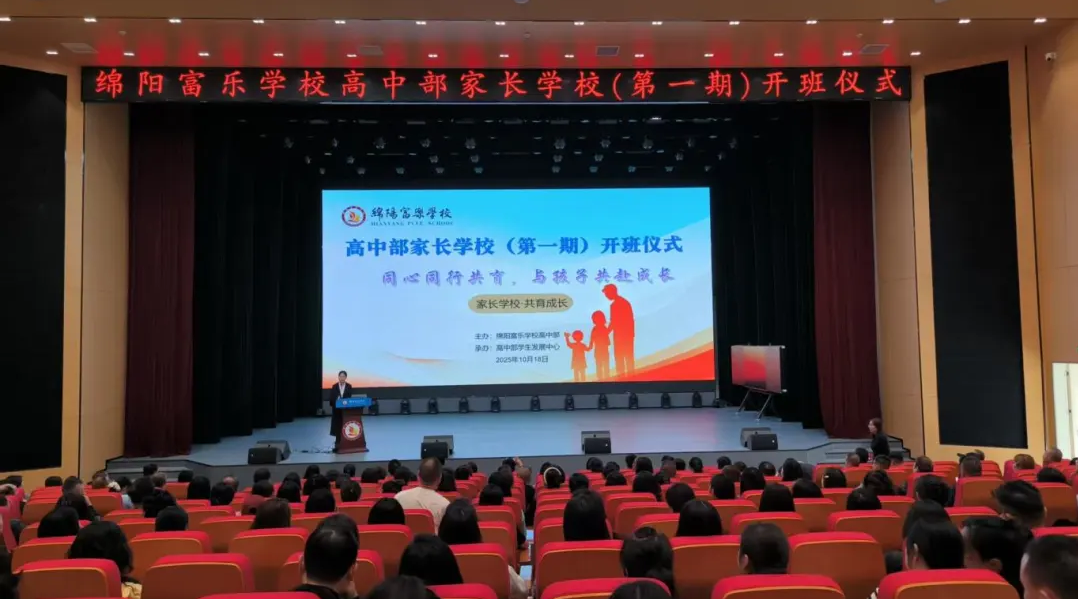 為了構(gòu)建家校溝通的橋梁,凝聚家校教育的合力,10月18日下午,綿陽(yáng)富樂學(xué)校高中部開展了以“同心同行共育,并肩共赴前程”為主題的2025年秋季學(xué)期第一期家長(zhǎng)學(xué)校課程活動(dòng)。高一、高二年級(jí)300多名家長(zhǎng)代表齊聚高中部演藝中心,共話育人藍(lán)圖??傂8毙iL(zhǎng)高中部校長(zhǎng)本國(guó)良、高中部學(xué)生發(fā)展中心主任劉元超、高中部后勤服務(wù)中心副主任范恒銳和高中部行政中心主管鄧曉娟參加活動(dòng)。