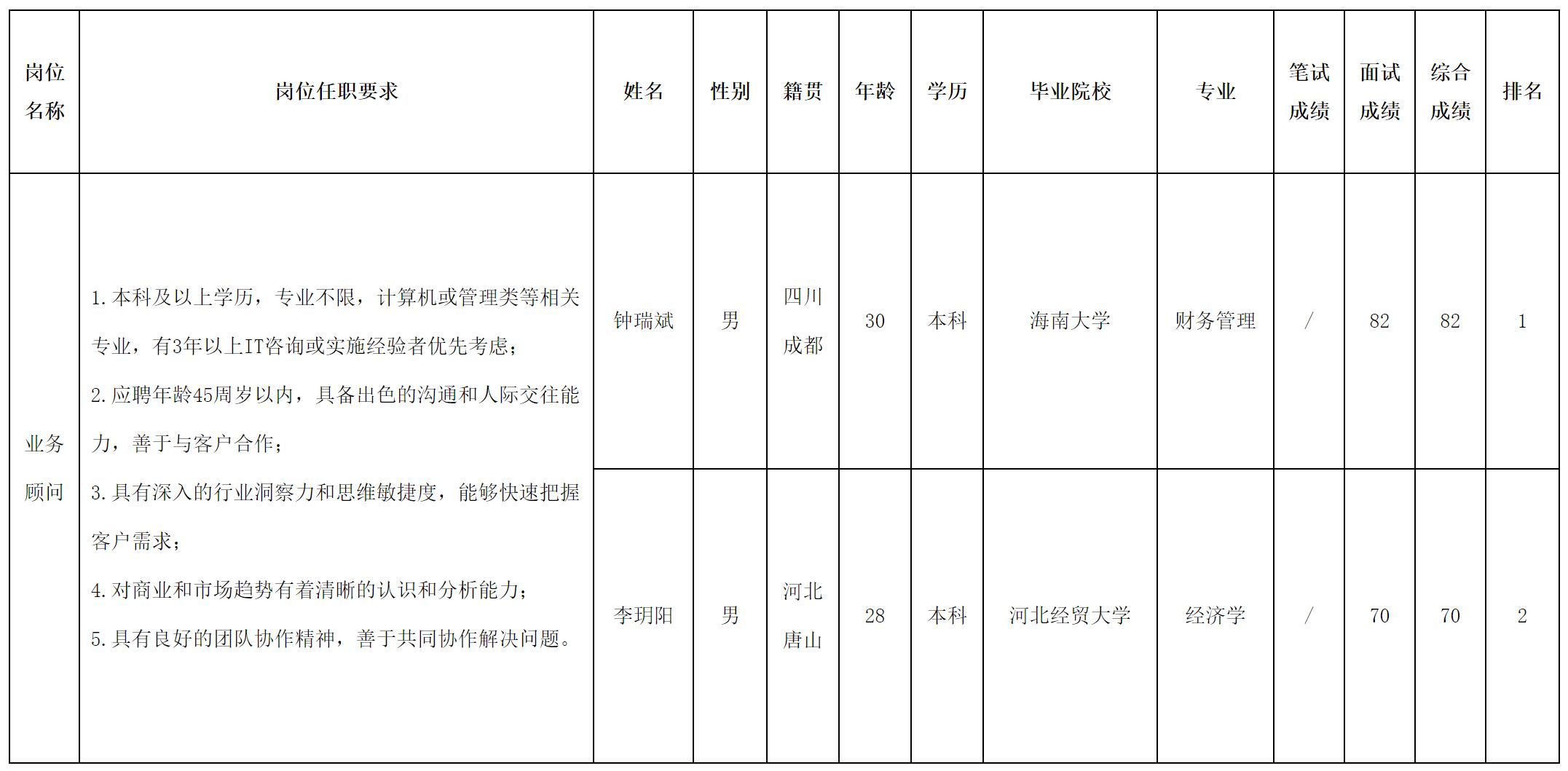 根據(jù)四川虹信軟件股份有限公司發(fā)布的招聘公告及招聘相關(guān)規(guī)定,經(jīng)面試等程序,現(xiàn)將測(cè)試成績(jī)予以公示。
