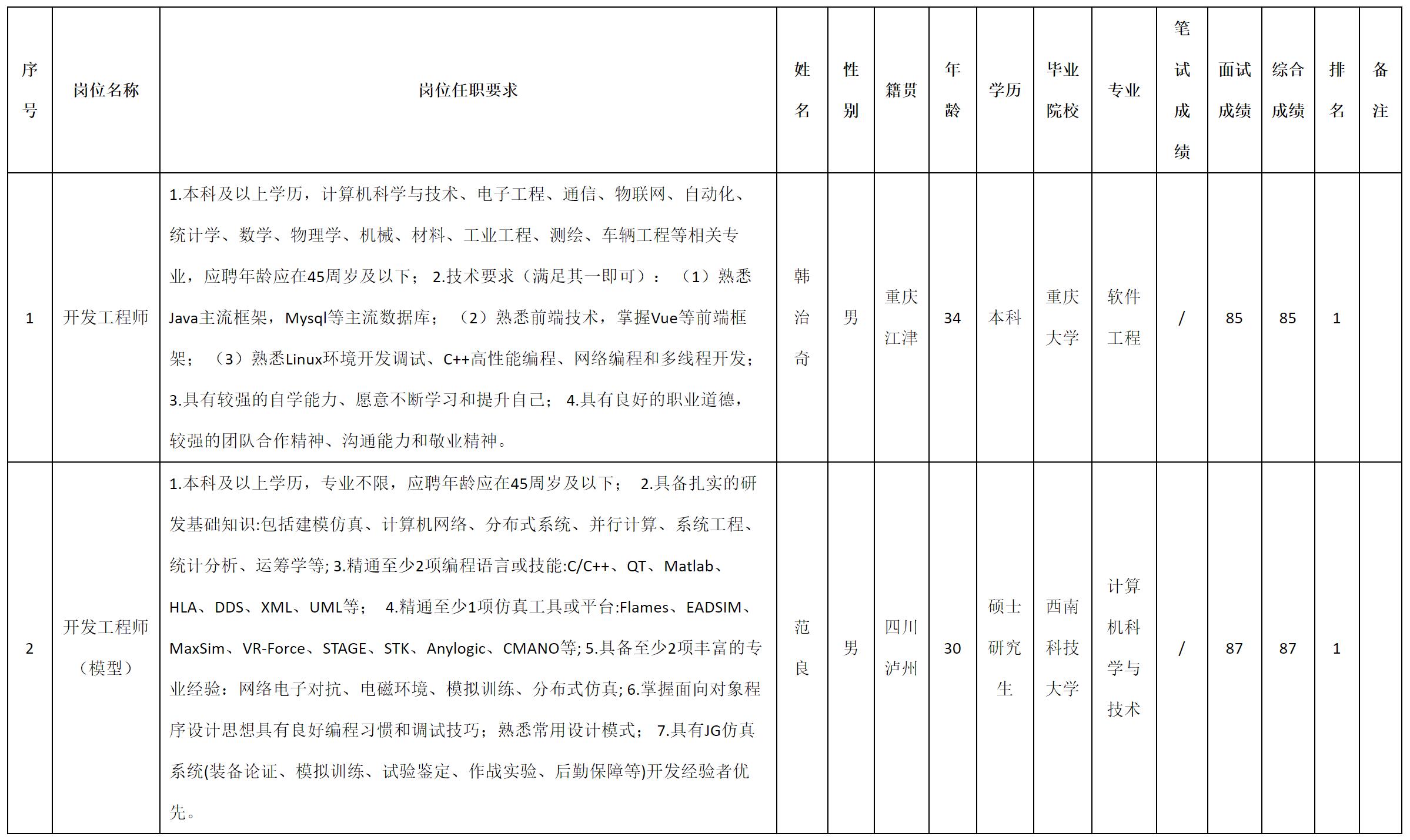 根據(jù)四川九洲投資控股集團有限公司軟件與數(shù)據(jù)智能軍團發(fā)布的招聘公告及招聘相關規(guī)定,現(xiàn)將測試成績予以公示。