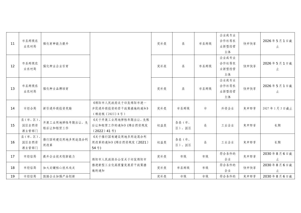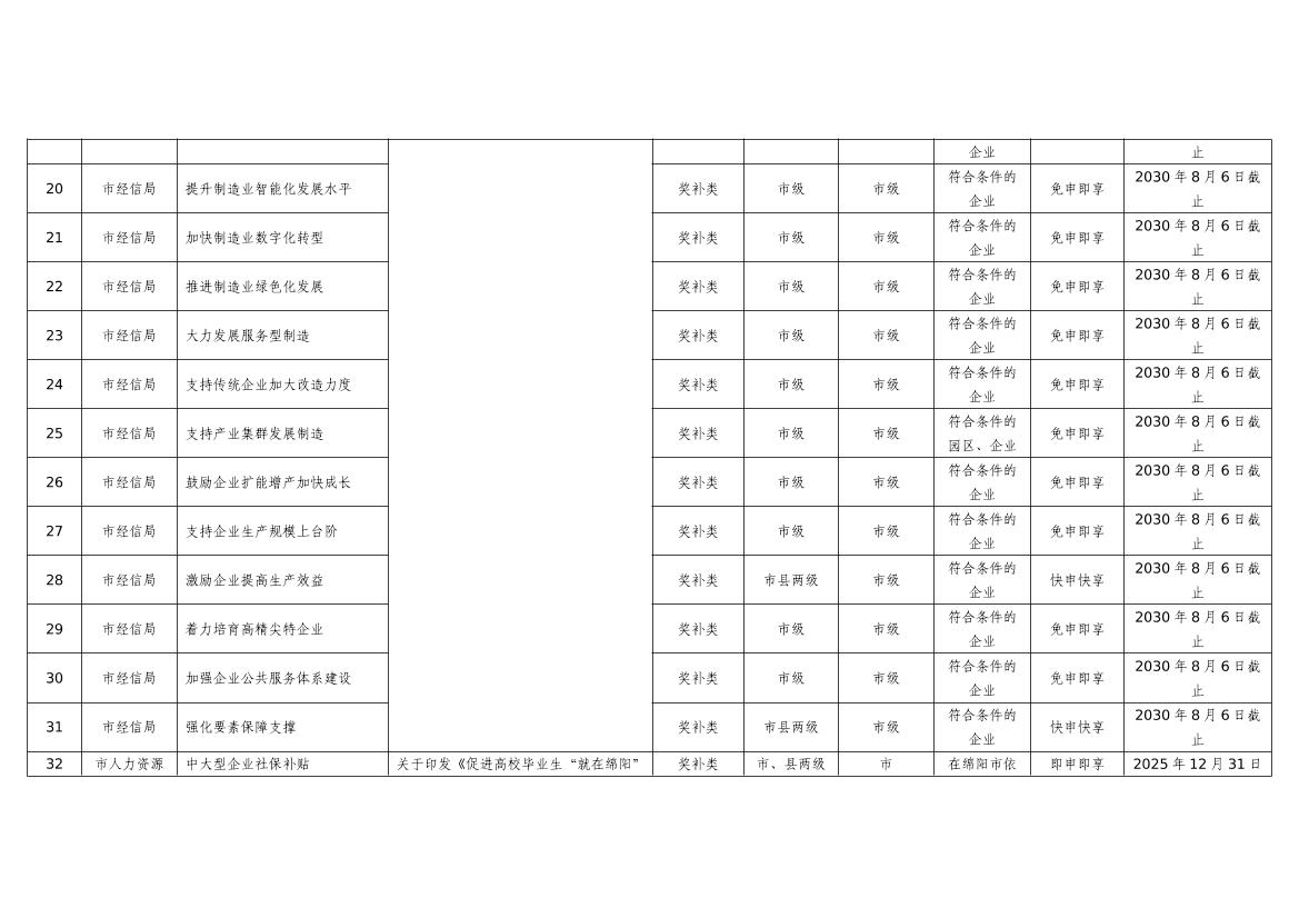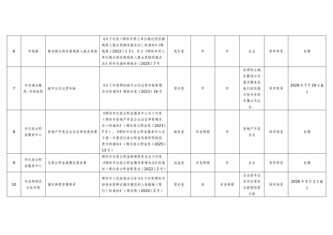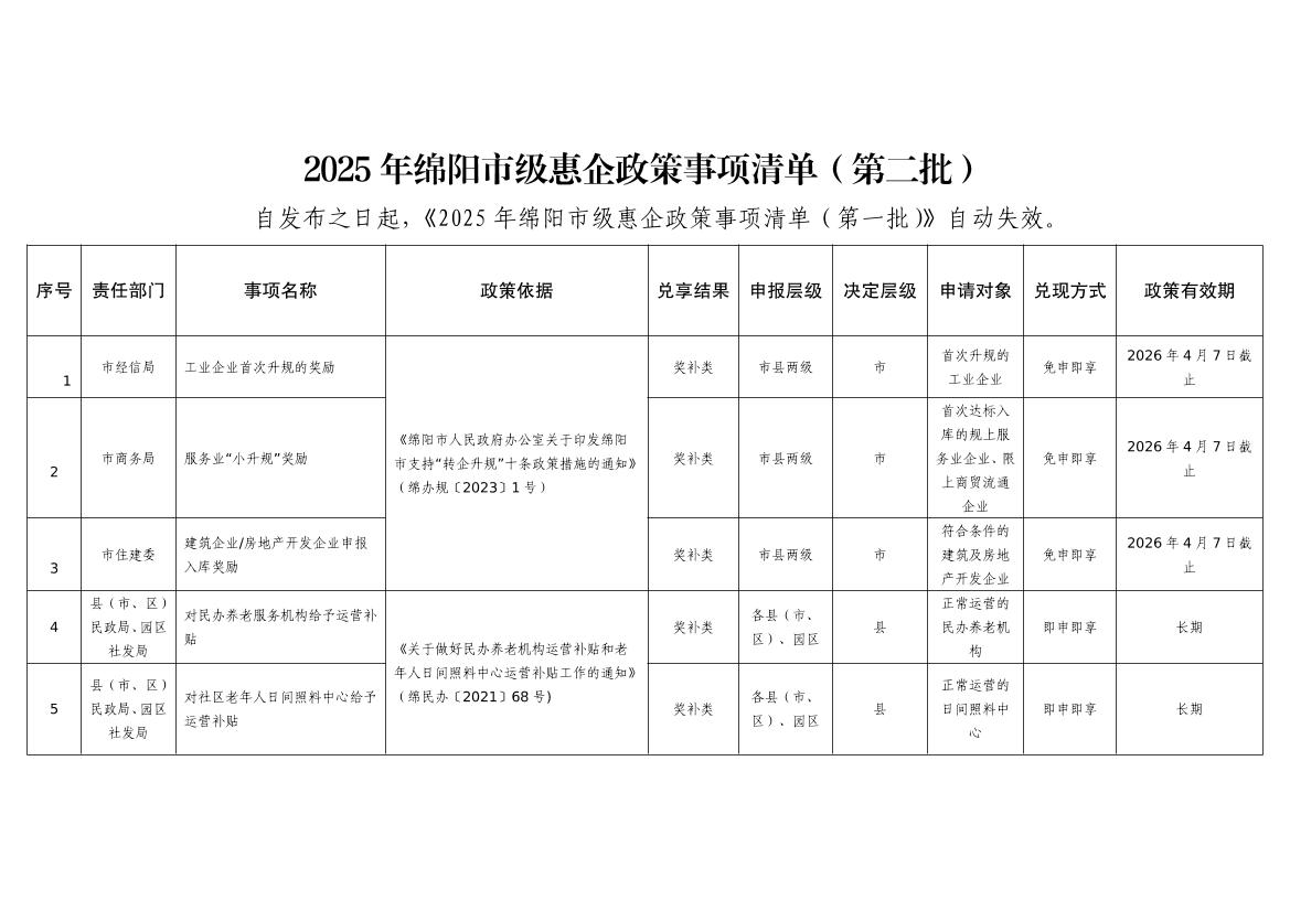 2025年綿陽(yáng)市級(jí)惠企政策事項(xiàng)清單(第二批)