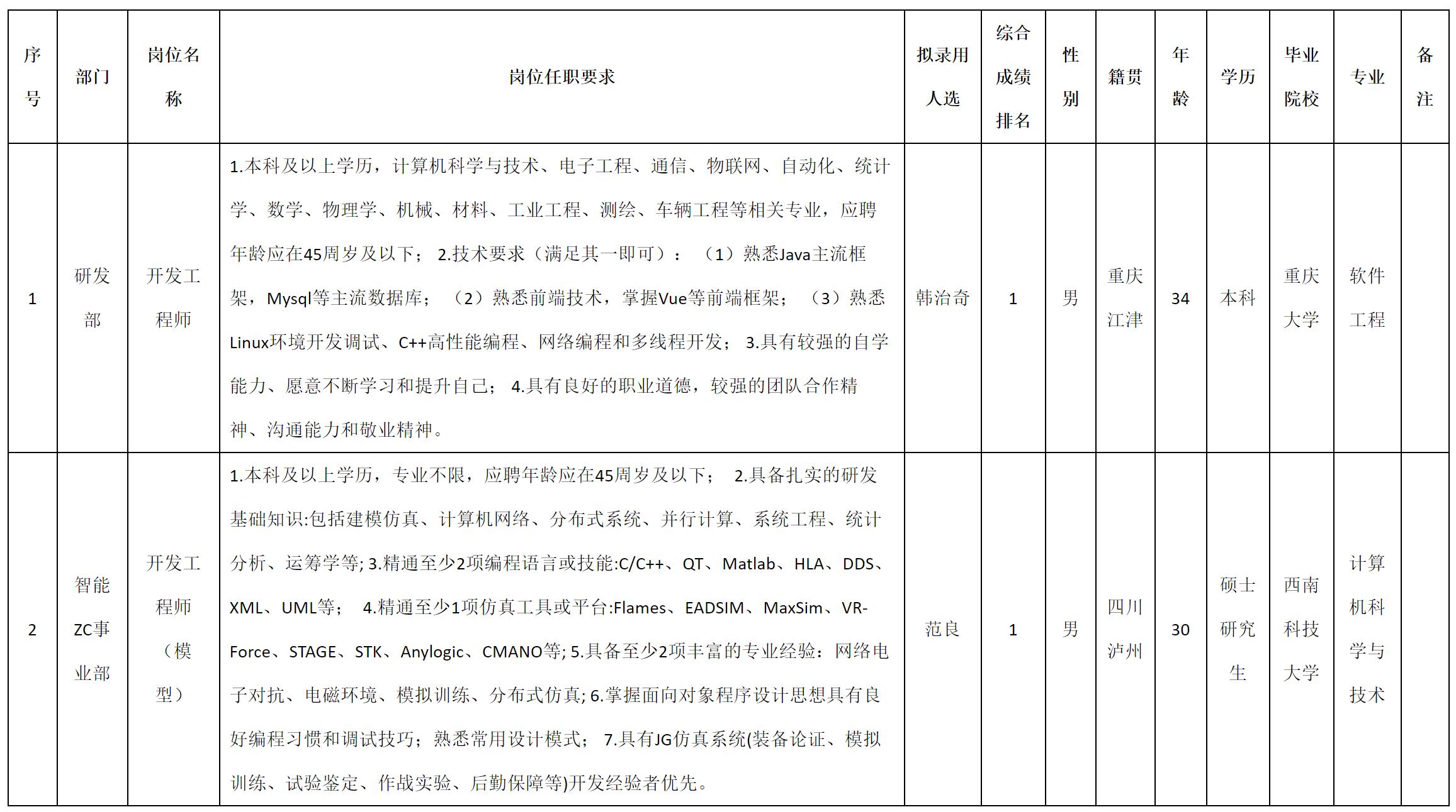 根據(jù)四川九洲投資控股集團(tuán)有限公司軟件與數(shù)據(jù)智能軍團(tuán)發(fā)布的招聘公告及招聘相關(guān)規(guī)定,經(jīng)測(cè)試、考察、體檢等程序,擬錄用韓治奇等2名同志到四川九洲投資控股集團(tuán)有限公司軟件與數(shù)據(jù)智能軍團(tuán)工作,現(xiàn)予以公示,具體情況如下: