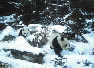大熊貓國家公園北川片區(qū),紅外相機拍攝到大熊貓母子。