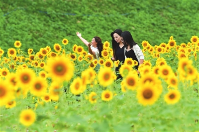 金秋時節(jié),游仙區(qū)石馬鎮(zhèn)紅巖水電站旁的連片向日葵生機盎然,吸引眾多游客前來觀賞打卡。