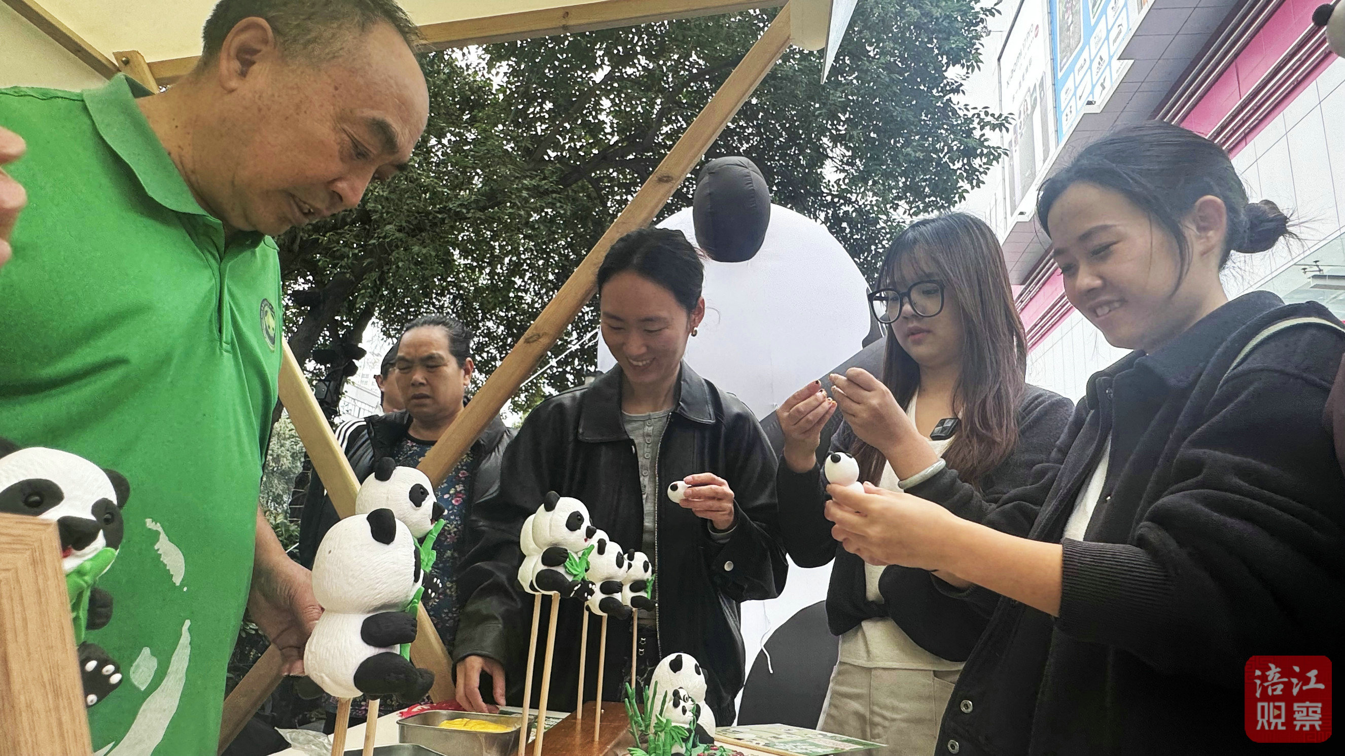 一旁的非遺互動·集章游園區(qū)更是人氣高漲。剪紙老師巧手翻飛,憨態(tài)可掬的熊貓輪廓便躍然紙上;面塑展臺上,一只只圓潤可愛的熊貓仿佛隨時要伸個懶腰;精美的草編工藝品,無不令人驚嘆傳統(tǒng)技藝與生態(tài)主題的完美融合。