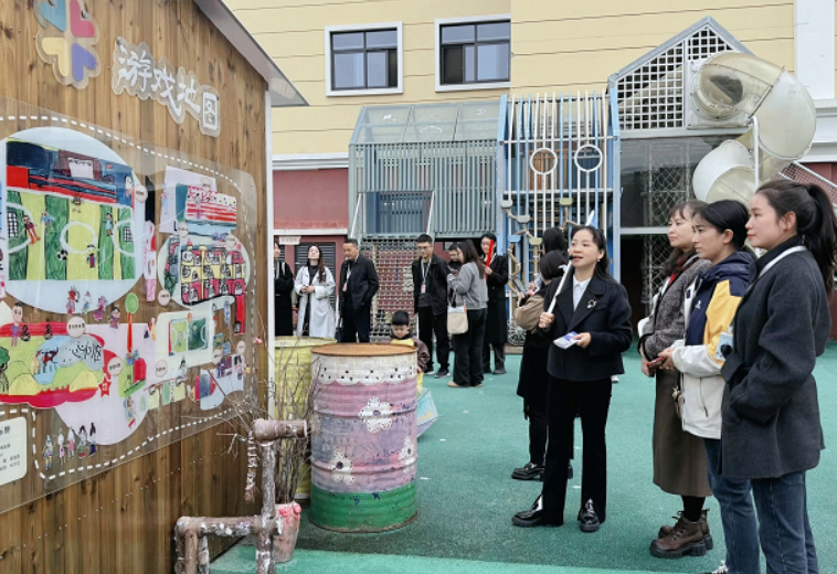 活動中,參觀團在北街幼兒園教師團隊的帶領(lǐng)下,走訪了戶外與室內(nèi)各游戲區(qū)域。戶外的萌寵之家、沙水漫時光、童話樹屋、“泥”好有趣、涂鴉吧等特色區(qū)域,以自然材料和開放環(huán)境支持幼兒自主探索;小小氣象站、交通騎行區(qū)、木工坊、建構(gòu)區(qū)等功能性區(qū)域,讓孩子們在動手操作與角色扮演中提升綜合能力。