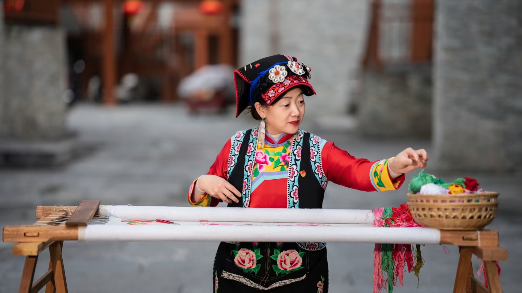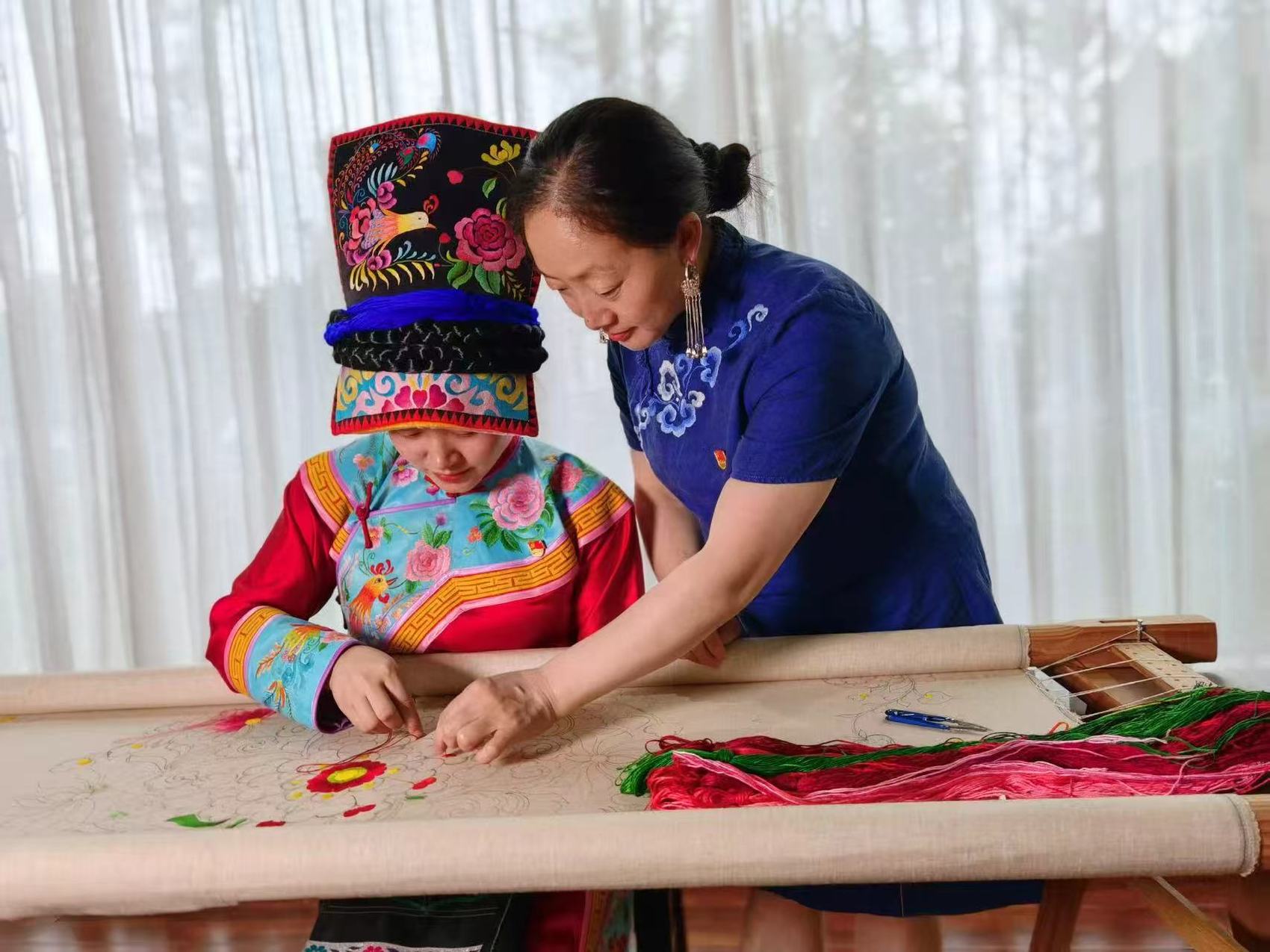 在陳云珍的工位旁,繡娘宋琴正俯身于繡架前,專注地繡制一幅雙面繡屏風(fēng)。宋琴曾因地震失去雙腿,5年前來到羌繡工坊后,在陳云珍手把手的教導(dǎo)下,如今已成長為工坊里獨(dú)當(dāng)一面的業(yè)務(wù)能手。“這里早就是我的第二個家了。”宋琴笑著說,“靠著這門手藝,大多數(shù)時候每月能穩(wěn)定增收2000多元。”