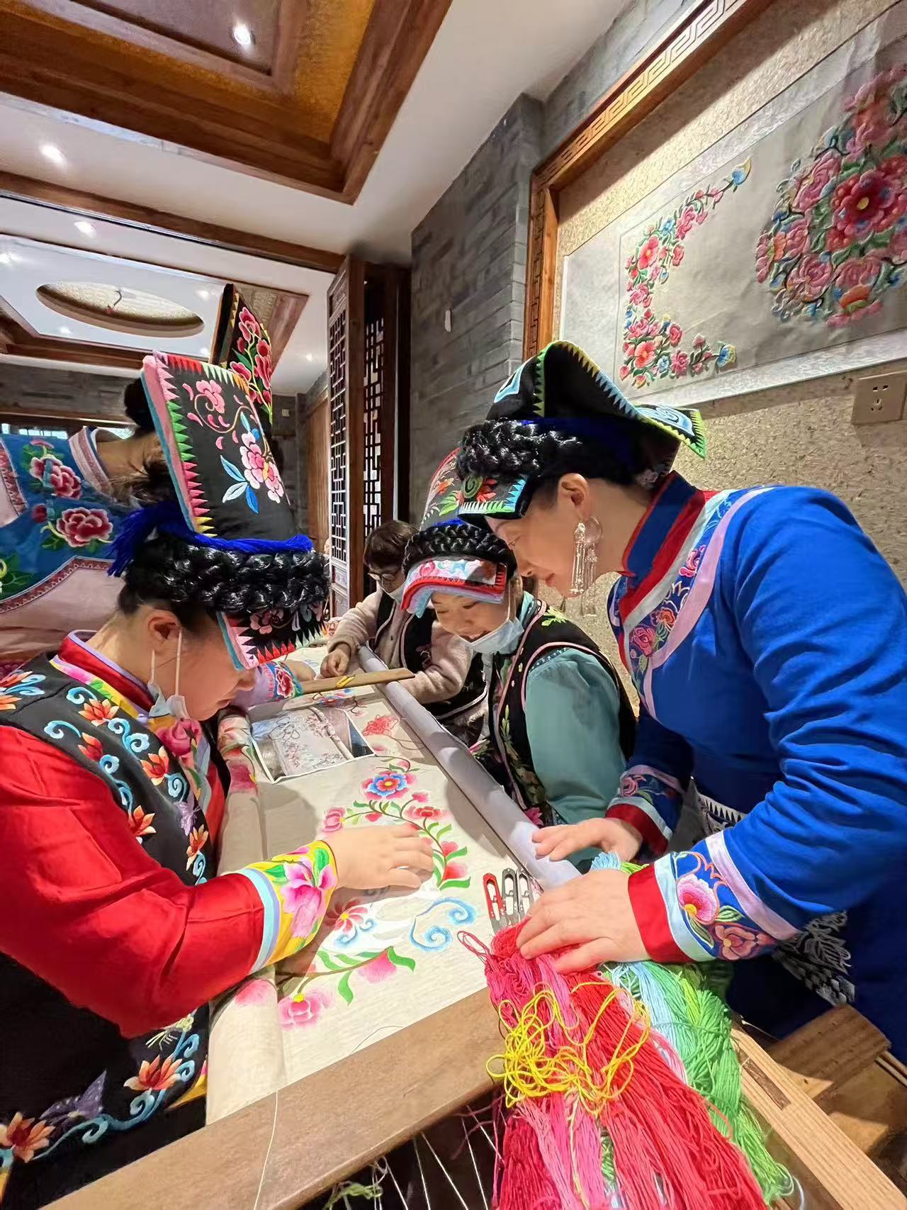 陳云珍和繡娘們探討針法(受訪者供圖)