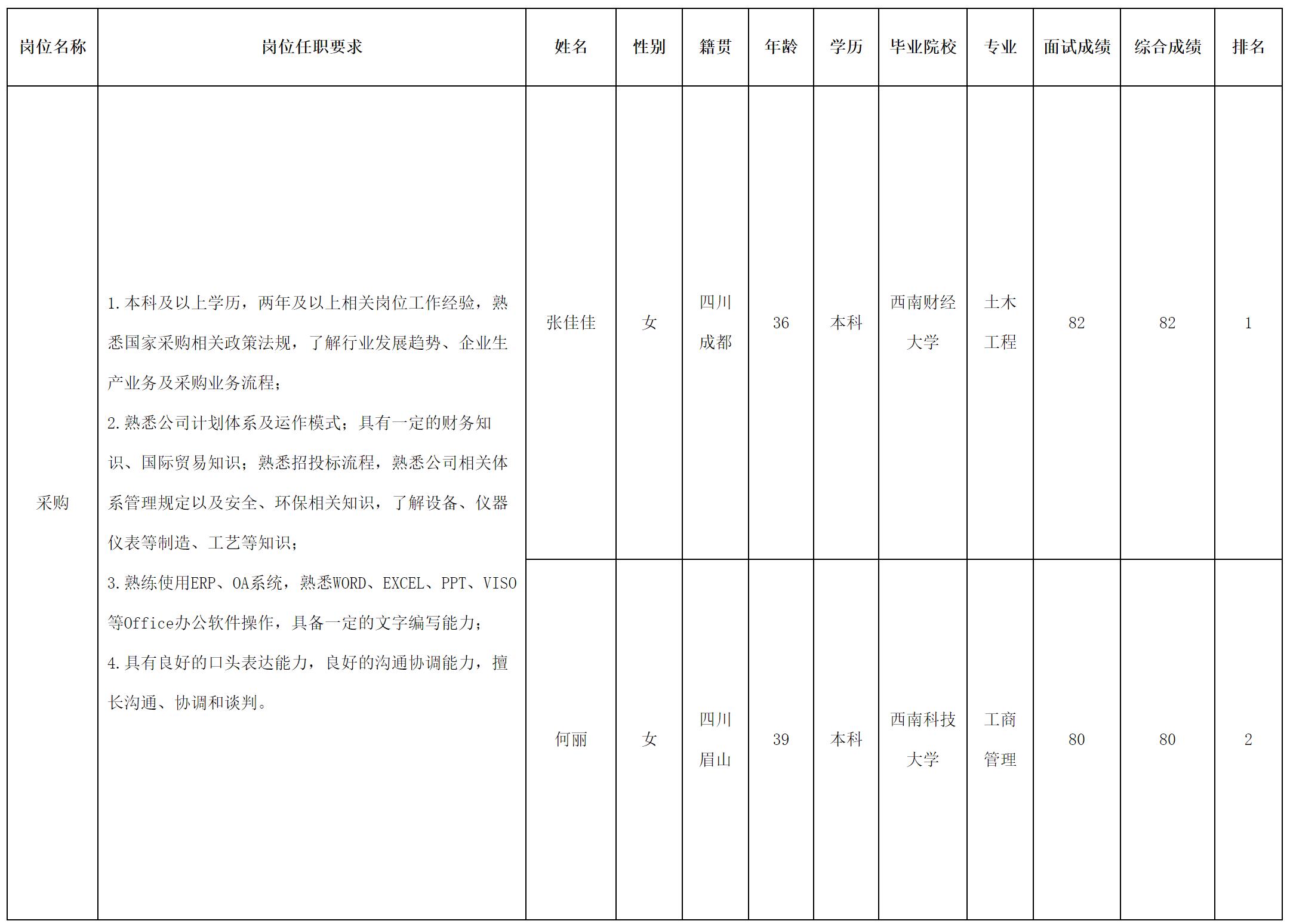 根據(jù)四川華豐科技股份有限公司發(fā)布的招聘公告及招聘相關(guān)規(guī)定,現(xiàn)將測(cè)試成績(jī)予以公示。