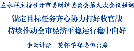 綿陽(yáng)新聞網(wǎng)訊 10月30日,市委財(cái)經(jīng)委員會(huì)第九次會(huì)議召開(kāi),省委常委、市委書(shū)記左永祥主持會(huì)議并講話(huà)。他強(qiáng)調(diào),要深入學(xué)習(xí)貫徹習(xí)近平總書(shū)記對(duì)四川工作系列重要指示精神,全面落實(shí)黨的二十屆四中全會(huì)精神,以及黨中央和省委關(guān)于做好經(jīng)濟(jì)工作的決策部署,錨定目標(biāo)任務(wù),堅(jiān)持問(wèn)題導(dǎo)向, 增添務(wù)實(shí)舉措,進(jìn)一步補(bǔ)短板、鍛長(zhǎng)板、防風(fēng)險(xiǎn),齊心協(xié)力打好收官戰(zhàn),持續(xù)推動(dòng)全市經(jīng)濟(jì)平穩(wěn)運(yùn)行、穩(wěn)中向好。