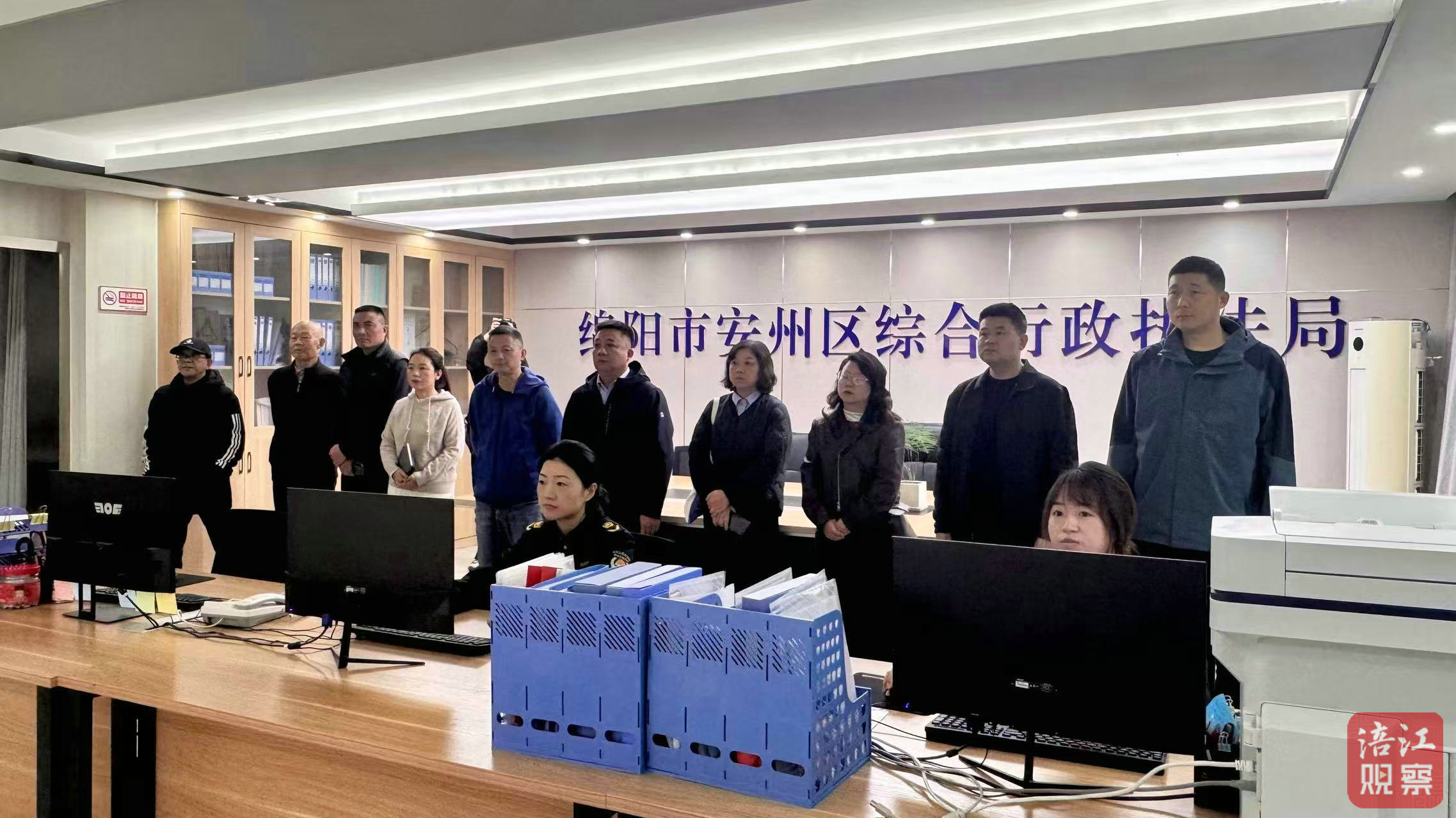 聘任儀式后,他們走進(jìn)安州區(qū)綜合行政執(zhí)法局指揮大廳,實(shí)地了解了安州區(qū)智慧城管中心“采集、分析、服務(wù)、指揮、監(jiān)察”五位一體的城市管理平臺運(yùn)行情況。