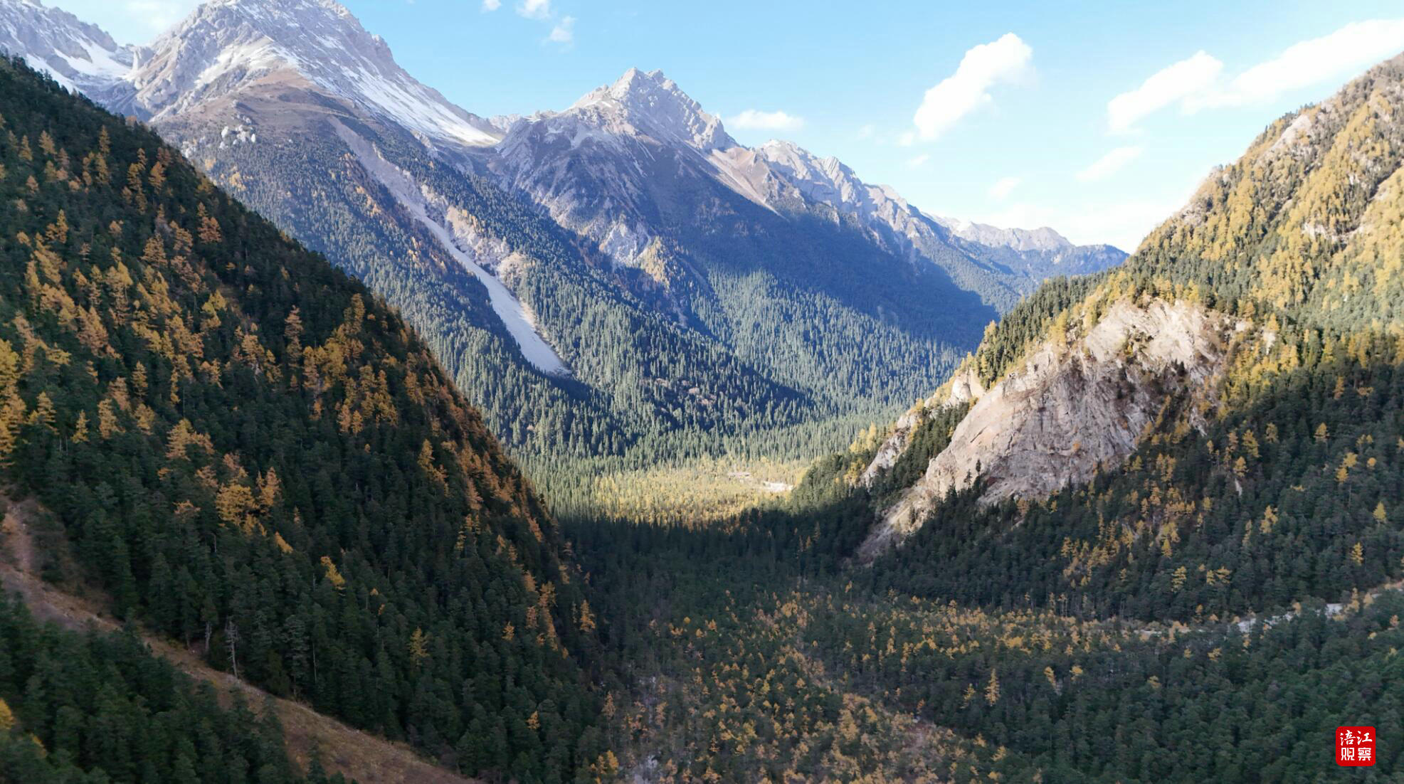 走進王朗片區(qū)的白沙溝流石灘,只見成片的四川紅杉褪去綠裝,換上金黃衣裳,在秋風中搖曳生姿。