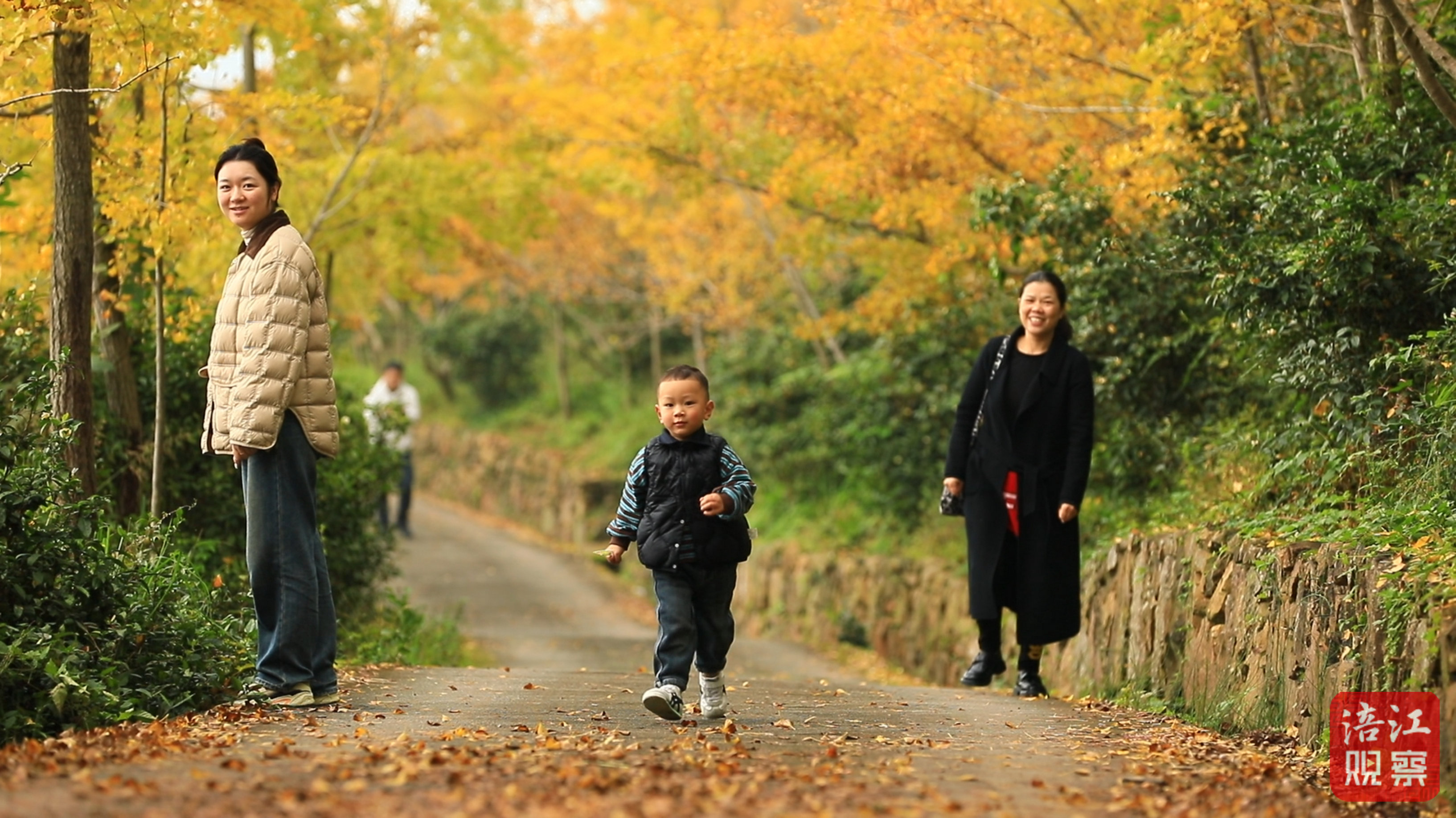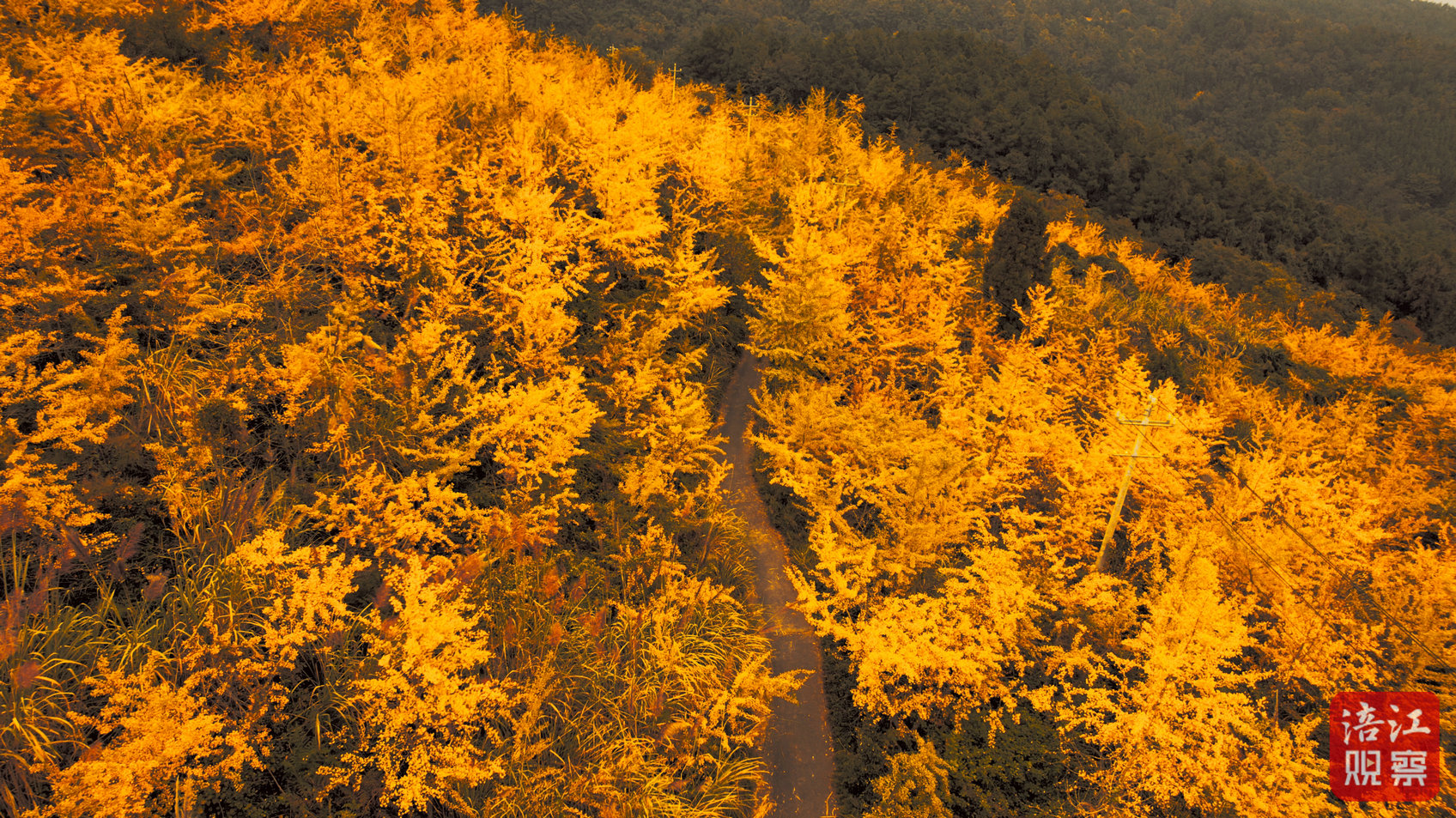 漫步林中,一樹樹銀杏輝煌耀眼,微風拂過,片片凋落的銀杏葉如蝴蝶翩翩起舞,鋪滿林間小道,形成一條金色“地毯”。
