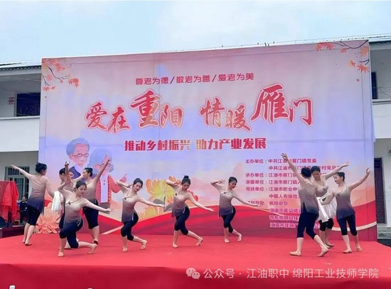 活動中,雁門關(guān)村民與江油職中師生同臺獻(xiàn)藝,16個節(jié)目依次上演。江油職中師生精心準(zhǔn)備的兩個節(jié)目成為全場亮點——24級舞蹈班11名同學(xué)以精湛舞技演繹古典舞《寒依疏影》,展現(xiàn)傳統(tǒng)文化韻味;23級舞蹈班3名同學(xué)則以充滿活力的《風(fēng)吟民族》傳遞民族風(fēng)情。同學(xué)們用舞姿傳遞敬意,以青春感染銀齡,展現(xiàn)出職教學(xué)生不僅技能扎實,更懷揣社會責(zé)任與感恩之心。節(jié)目贏得了全場陣陣掌聲,場面溫馨動人。