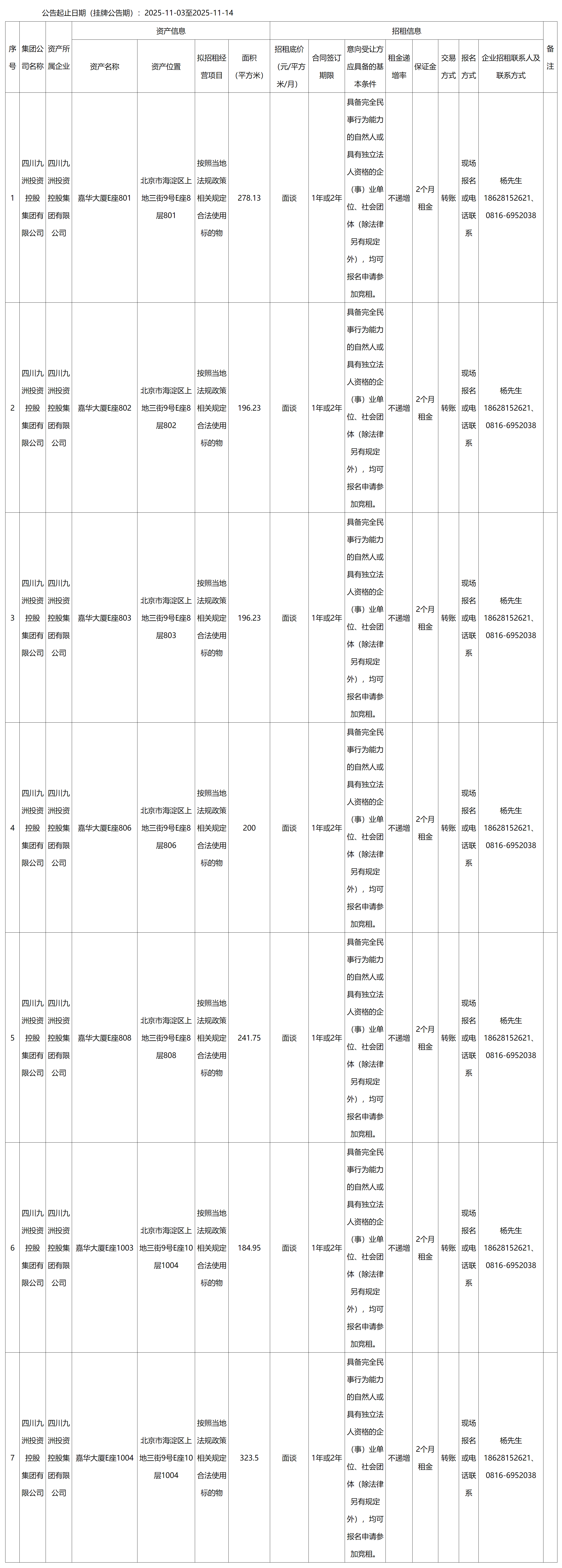 四川九洲千城商業(yè)管理有限公司北京項目部北京嘉華大廈E座房屋出租公告
