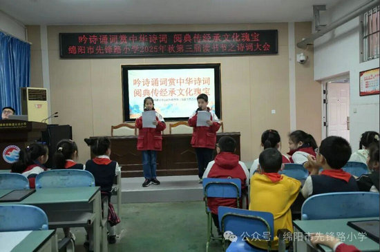 綿陽新聞網(wǎng)訊 11月5日上午,綿陽市先鋒路小學(xué)在學(xué)術(shù)廳內(nèi)舉行了以“吟詩誦詞品華夏雅韻,閱典傳經(jīng)承文化瑰寶”為主題的2025年秋詩詞大賽決賽活動(dòng)。歷經(jīng)班級初賽的嚴(yán)格選拔,脫穎而出的選手們齊聚一堂,以詩為劍,以詞為盾,在決賽舞臺上展開一場精彩的詩詞較量。