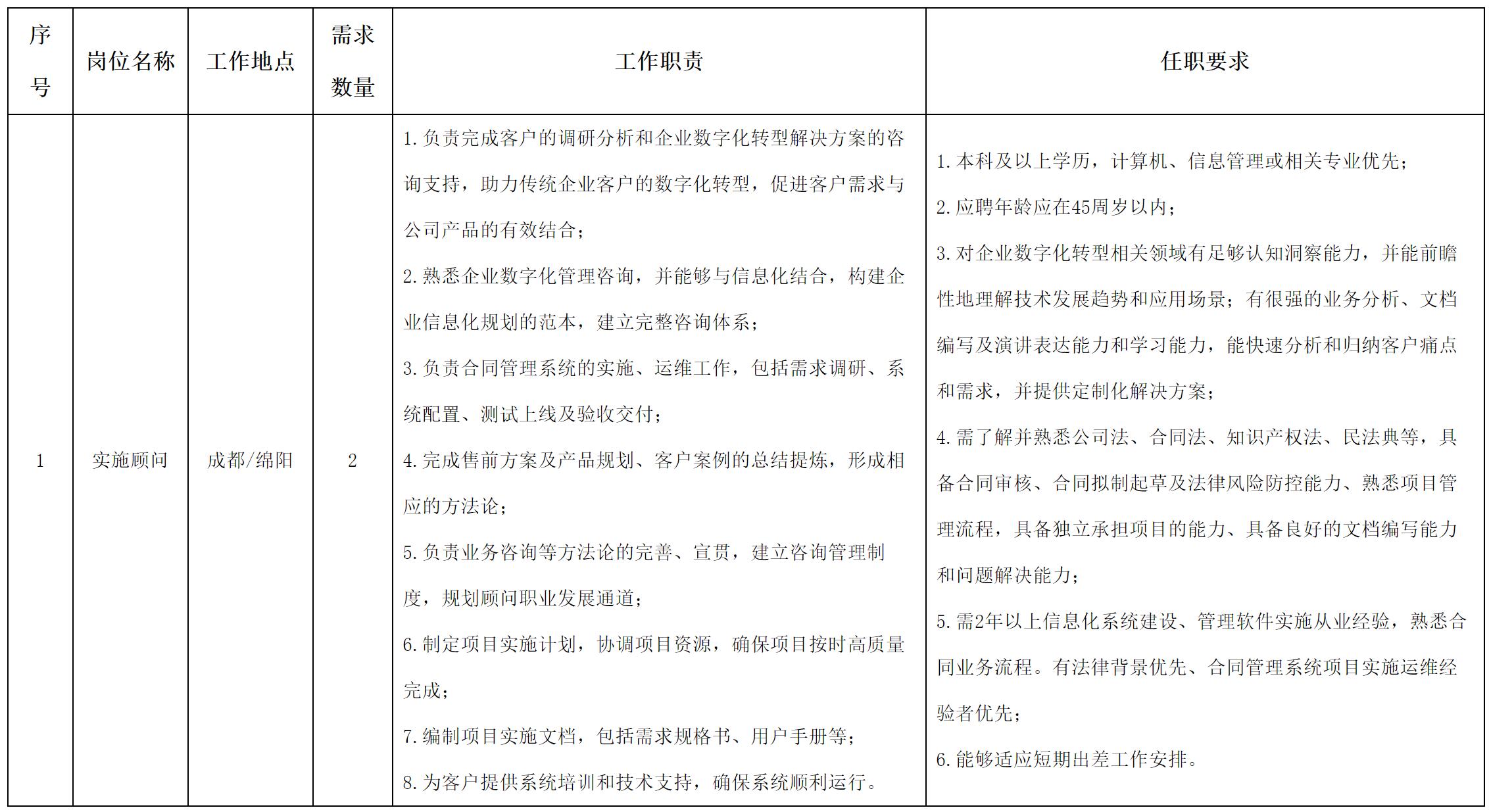 根據(jù)公司經(jīng)營發(fā)展需要,面向社會公開招聘以下崗位:
