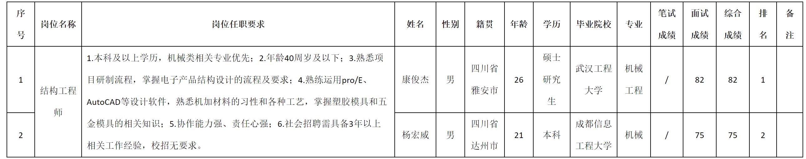 根據(jù)四川九洲光電科技股份有限公司發(fā)布的招聘公告及招聘相關(guān)規(guī)定,現(xiàn)將測試成績予以公示。