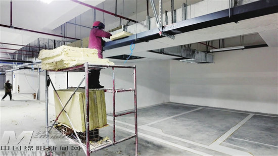 安州區(qū)智慧停車場及配套建設(shè)項(xiàng)目現(xiàn)場,工人正在安裝防火包裹。