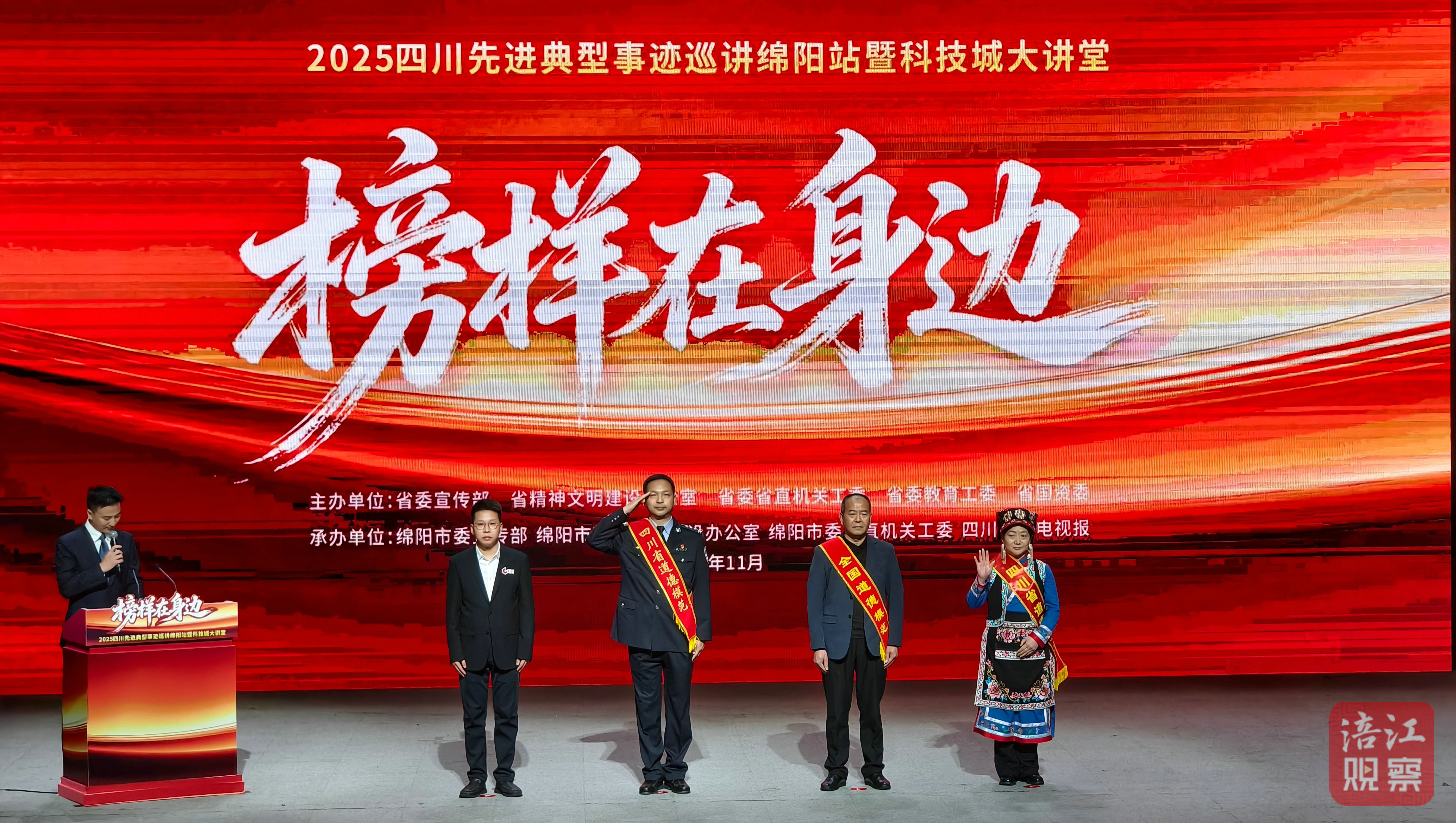 11月12日,綿州大劇院內(nèi)掌聲雷動(dòng)、暖意融融,“榜樣在身邊”四川先進(jìn)典型事跡巡講(綿陽站)暨科技城大講堂活動(dòng)在此舉行。市直機(jī)關(guān)、各縣(市、區(qū))、園區(qū)及基層黨員群眾代表齊聚一堂,聆聽4位道德模范的動(dòng)人事跡,感受向善向上的精神力量。