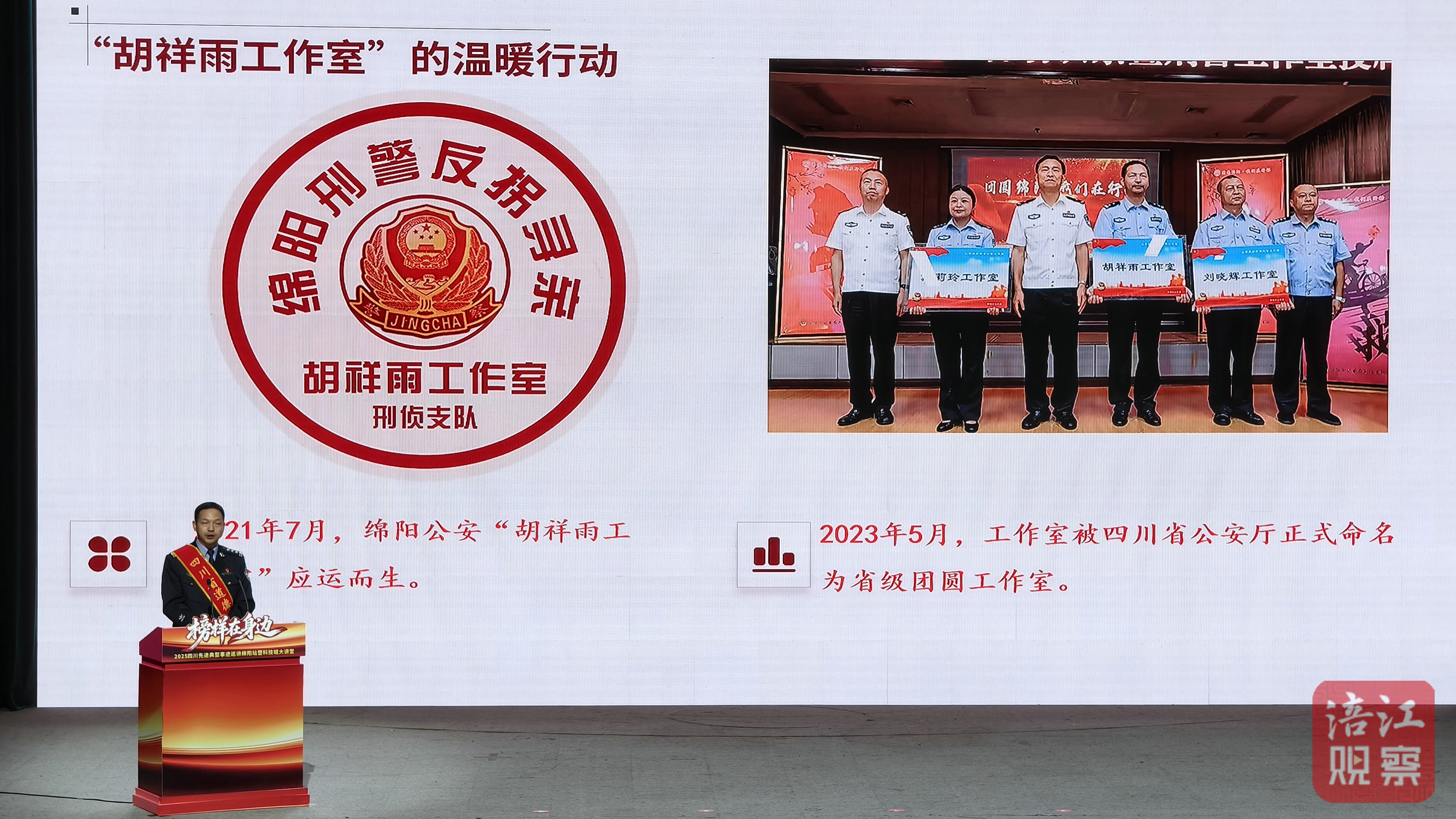 “每面錦旗背后,都是一個(gè)離散家庭的重新?lián)肀А?rdquo;綿陽市公安局刑偵支隊(duì)一大隊(duì)教導(dǎo)員胡祥雨的話語質(zhì)樸深情。26年從警生涯中,他從警犬訓(xùn)導(dǎo)員轉(zhuǎn)變?yōu)槿罕娍谥?ldquo;有溫度的胡叔叔”,6年間承接全國尋親求助5萬余次,促成792個(gè)家庭團(tuán)圓。當(dāng)他念出被拐者“胡叔叔,我想見我媽”的微信留言時(shí),臺(tái)下不少觀眾悄悄擦拭眼角。