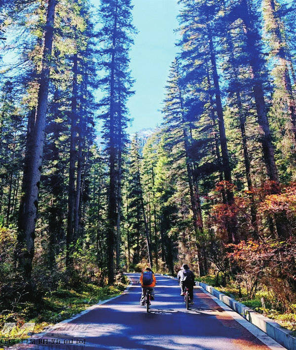 訪客在王朗生態(tài)綠道騎行。