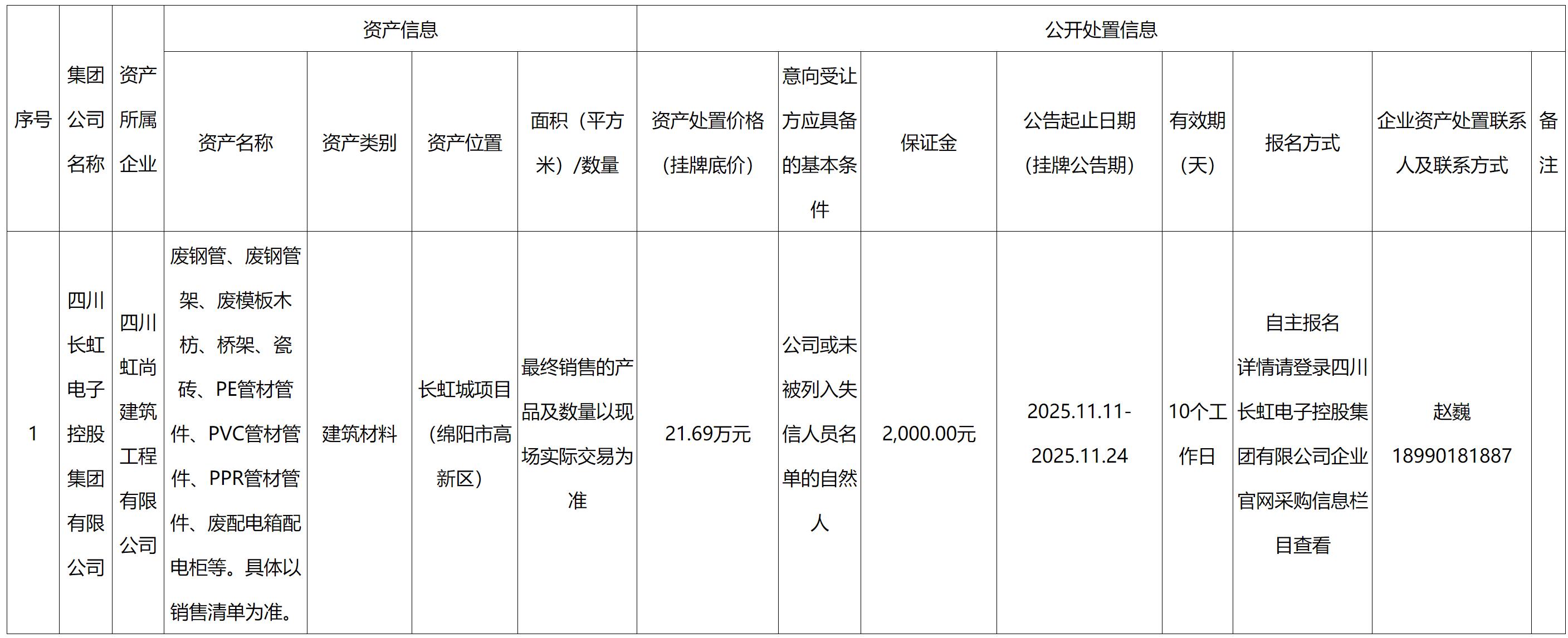 四川虹尚建筑工程有限公司資產(chǎn)處置公告