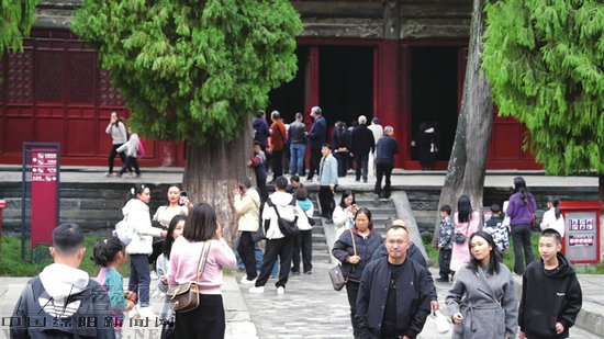 秋假期間,平武報(bào)恩寺迎來(lái)大量親子游客。 記者 任露瀟 攝