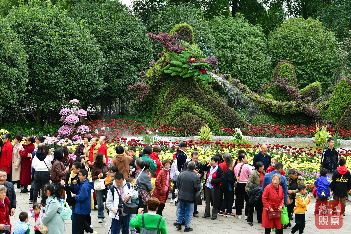 除展現(xiàn)大禹治水、文昌祖庭、嫘祖養(yǎng)蠶等綿陽歷史人文的主題景觀外,“熊貓家園”展區(qū)以五色草塑造出可愛的大熊貓形象,融入神秘的羌族羊頭圖騰元素,深受孩子們喜愛。“禮贊和平”“龍鳳呈祥”“神秘古蜀”等造型各具特色,讓游客在賞菊之余,領(lǐng)略綿陽多元文化的魅力。