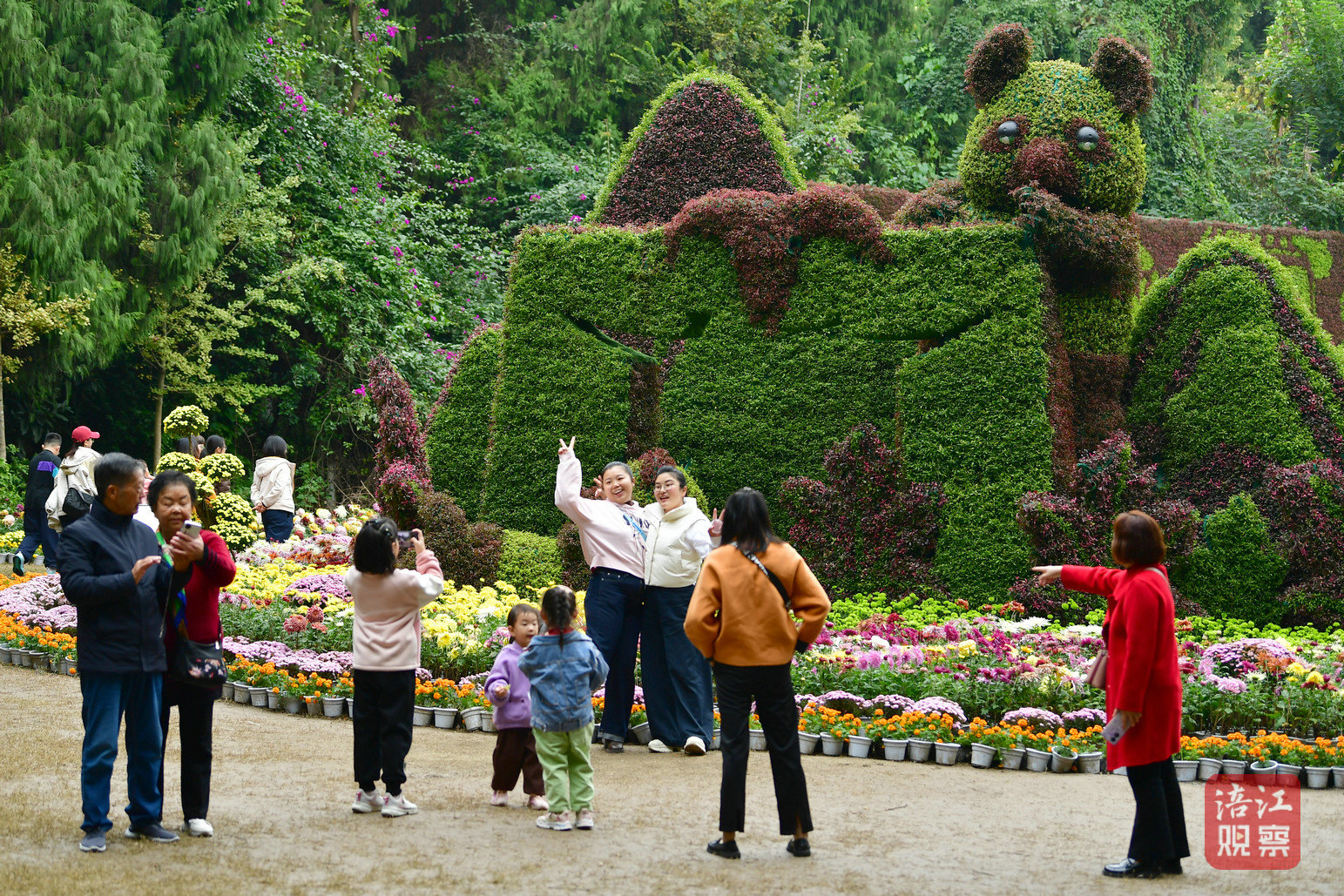 12日上午,記者在富樂山“安逸四川·樂游綿陽”菊展主題展區(qū)看到,孩子們穿梭于五色草編織的綿陽文化景觀之間,或在大禹治水造型前駐足凝望,或在憨態(tài)可掬的“熊貓家園”菊景旁嬉戲留影。