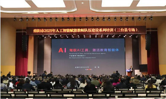 綿陽新聞網(wǎng)訊 為了深入貫徹國家“推進(jìn)教育數(shù)字化”的戰(zhàn)略部署,11月6日至7日,綿陽市人工智能賦能教師隊伍建設(shè)培訓(xùn)(三臺縣專場)在三臺博強(qiáng)外國語學(xué)校學(xué)術(shù)交流廳成功舉行。市、縣相關(guān)領(lǐng)導(dǎo)及全縣校園長、人工智能專家、種子教師400余人參加。