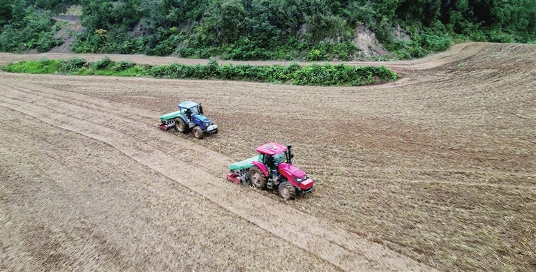 在科技的加持下,北斗導(dǎo)航技術(shù)如同一把“金鑰匙”,打開了坡地冬小麥高效、優(yōu)質(zhì)播種的新模式。目前,鹽亭縣已播種冬小麥10萬(wàn)畝,預(yù)計(jì)11月底將全面完成23萬(wàn)畝播種任務(wù)。
