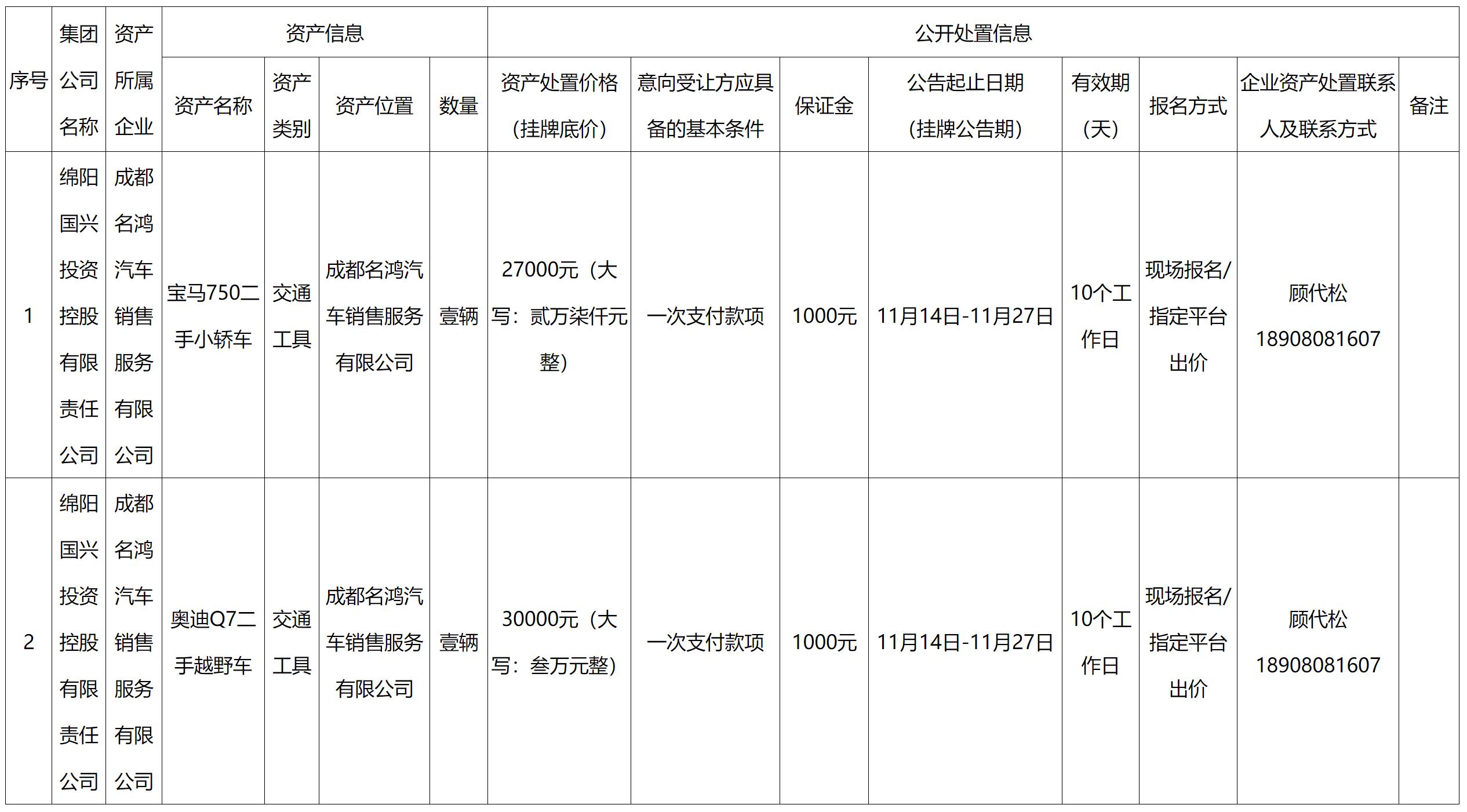 綿陽國興投資控股有限責任公司資產(chǎn)處置公告