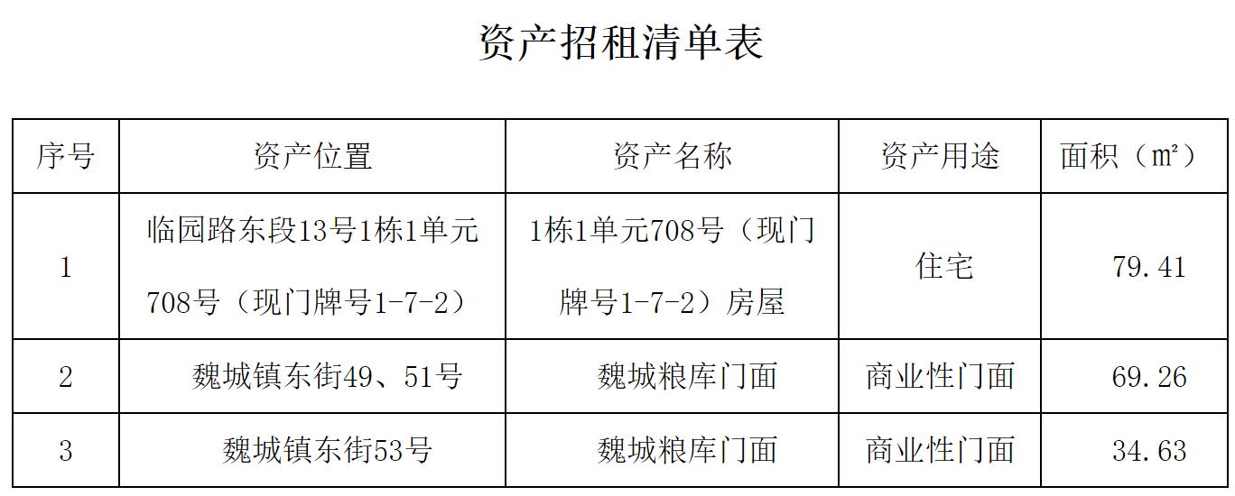 綿陽市儲備糧管理有限公司現(xiàn)將權(quán)屬和代管的部分資產(chǎn)面向社會進行公開競價招租(詳見《資產(chǎn)招租清單表》),有關(guān)事宜公告如下: