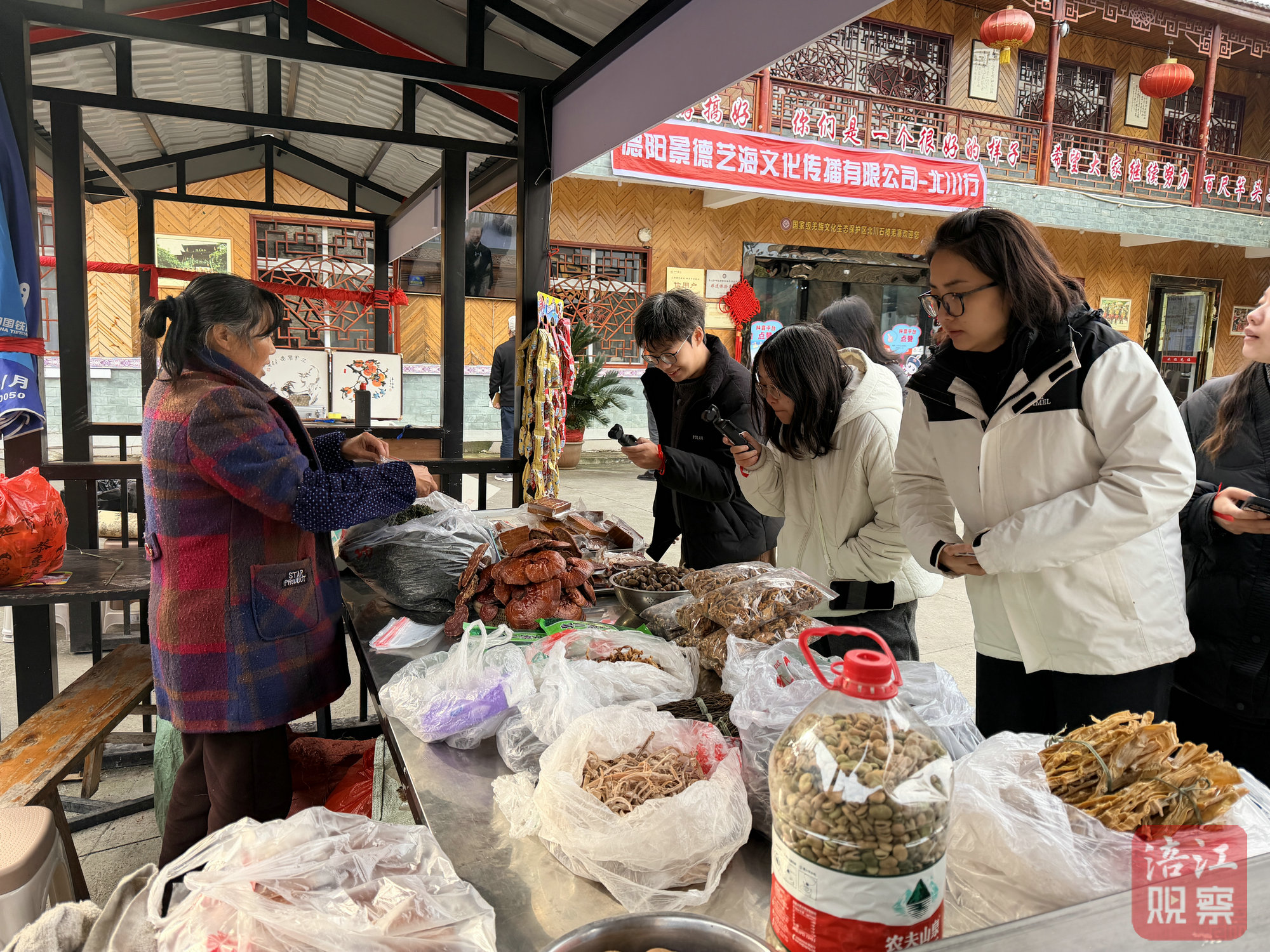 來(lái)到石椅村羌寨廣場(chǎng),大家看到,村民們正拿著自家熏制的北川老臘肉、剛采摘的野生獼猴桃熱情招呼游客品嘗。