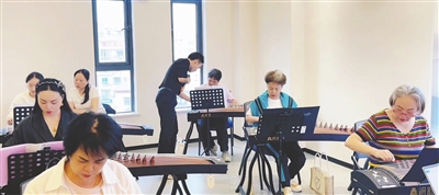 老年人在創(chuàng)業(yè)園街道老年大學(xué)學(xué)習(xí)古箏。孫麗 攝