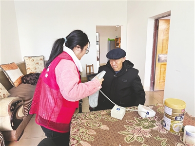 志愿者上門(mén)為老年人檢查身體。孫麗 攝