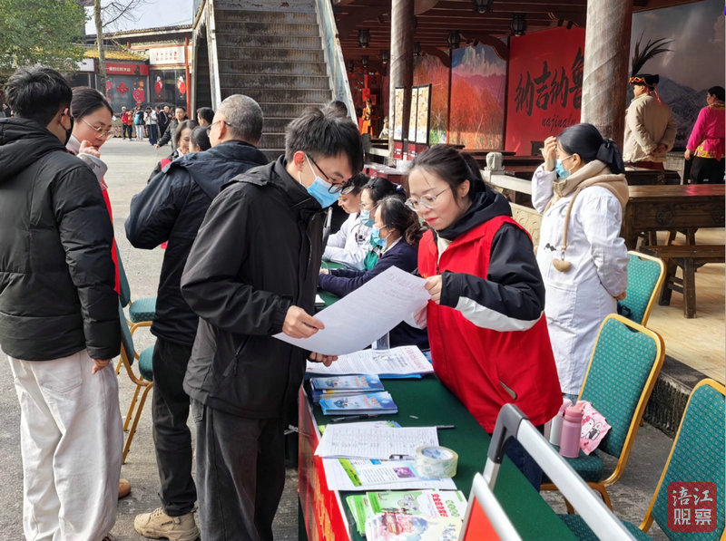 在會(huì)場(chǎng)的一側(cè),農(nóng)特展銷與新時(shí)代文明實(shí)踐趕大集活動(dòng)同步開展,北川老臘肉、高山蜂蜜、青梅酒等特色農(nóng)產(chǎn)品吸引眾多游客駐足選購(gòu),既為游客搭建了“帶得走的鄉(xiāng)愁”選購(gòu)平臺(tái),也拓寬了農(nóng)戶增收渠道?,F(xiàn)場(chǎng)還設(shè)有便民醫(yī)療服務(wù)點(diǎn),醫(yī)護(hù)人員為村民和游客提供免費(fèi)身體檢查服務(wù)。同時(shí),通過宣傳手冊(cè)普及環(huán)境衛(wèi)生治理、防范電信詐騙、森林防滅火、燃?xì)馐褂玫劝踩R(shí)。