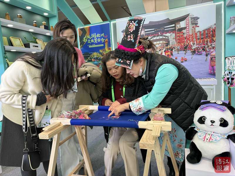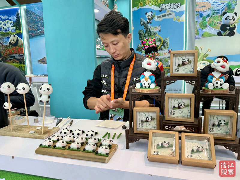 在展區(qū)一側(cè),綿陽(yáng)以“青睞綿陽(yáng) 熊貓有約”文旅品牌為主題,共設(shè)置了綿陽(yáng)中華大熊貓?jiān)?、平武、北川三個(gè)展位,攜非遺項(xiàng)目活態(tài)展演和200多件文創(chuàng)產(chǎn)品亮相。從剪紙到羌繡,從面塑到草編,從手辦到潮玩,創(chuàng)意無窮的熊貓形象,充分展示了綿陽(yáng)對(duì)熊貓IP的無限想象力,現(xiàn)場(chǎng)氣氛熱烈,吸引眾多國(guó)內(nèi)外嘉賓駐足參觀。
