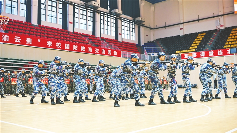 綿陽新聞網(wǎng)訊 “稍息、立正!”伴隨著清脆嘹亮的口令,來自四川、重慶、云南、貴州四省市的百余名中學(xué)生身著迷彩服,動作整齊劃一,稚嫩的臉龐上透著堅毅。11月21日,“川渝云貴”學(xué)校國防教育交流活動在綿陽市涪城區(qū)體育館正式開營。