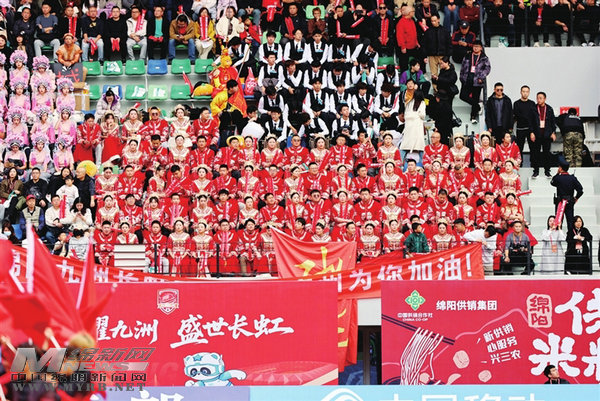 50對(duì)新人在川超賽場(chǎng)為綿陽隊(duì)加油助威。 記者 陳冬冬 攝