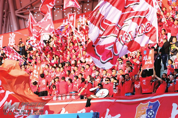 看臺上,球迷為隊員吶喊助威。 記者 陳冬冬 攝