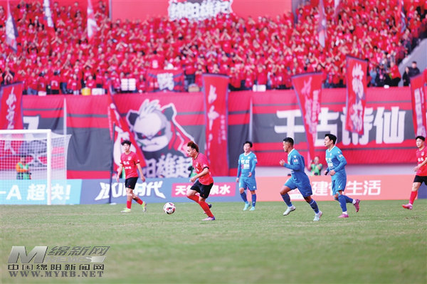 綿陽新聞網(wǎng)訊 11月23日下午,晴空萬里,三臺縣體育場內(nèi)座無虛席,川超聯(lián)賽第十輪綿陽賽區(qū)收官之戰(zhàn)在此激情上演,綿陽九洲長虹隊主場迎戰(zhàn)阿壩雪山雄鷹隊,上萬名球迷齊聚涪江之畔,共同見證這場綠茵盛宴。