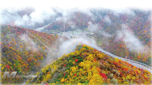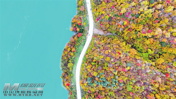 穿行于彩林之中的九綿高速?!∮浾?任露瀟 攝