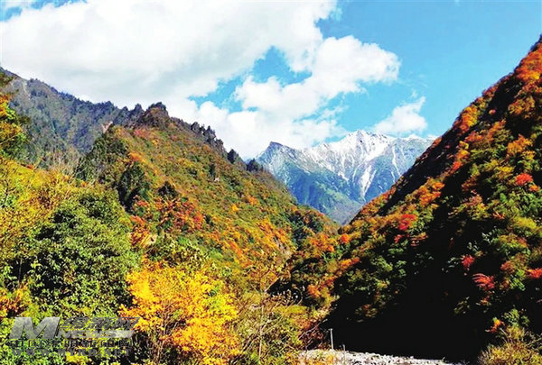平武王朗保護區(qū),雪山與彩林相映。 記者 李春梅 攝