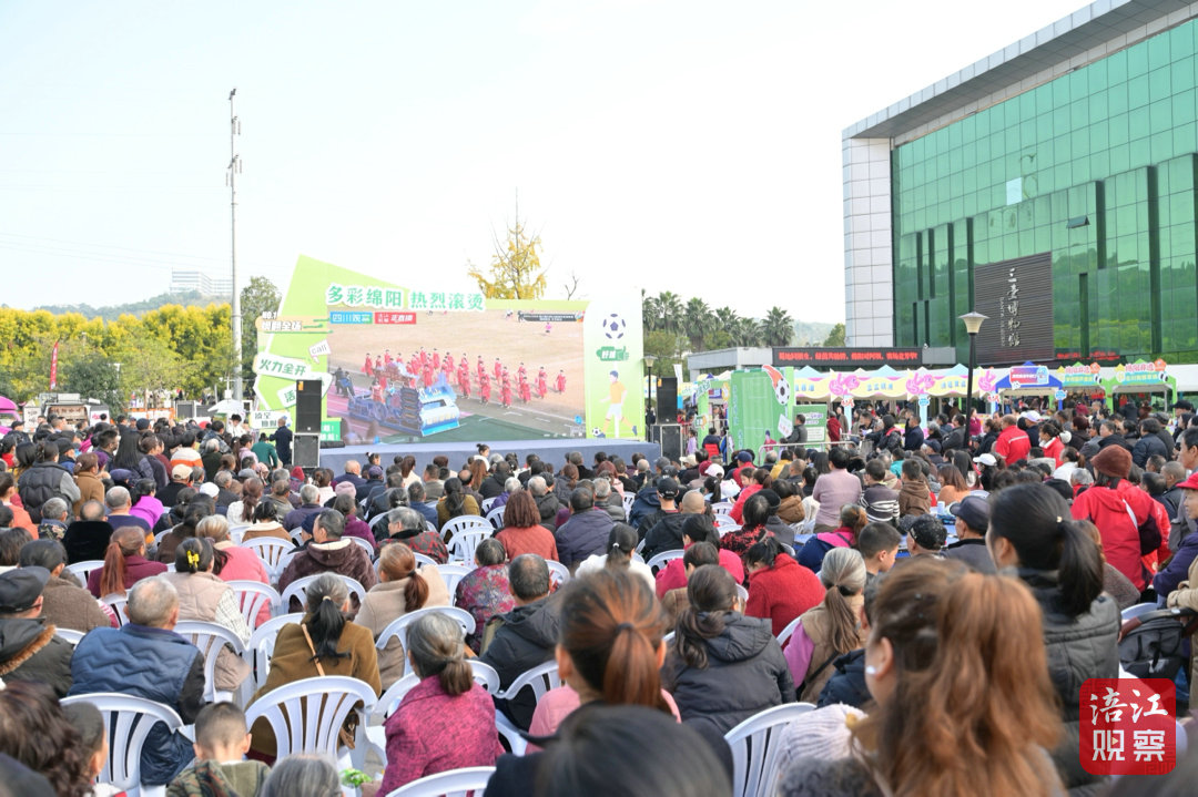 11月23日,綿陽隊與阿壩隊比賽場外的“多彩綿陽 熱烈滾燙”川超專場活動人氣火爆。