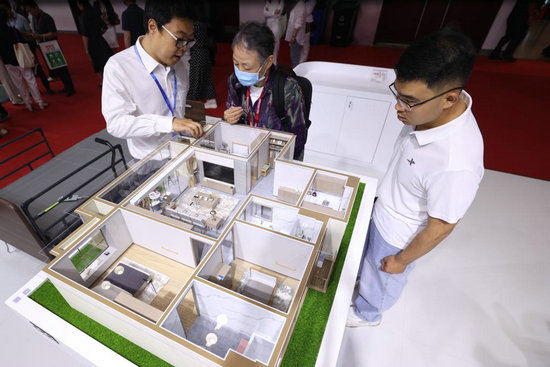5月21日,工作人員在第十一屆中國國際養(yǎng)老服務業(yè)博覽會上介紹適老化改造方案。新華社發(fā)(陳曉根 攝)