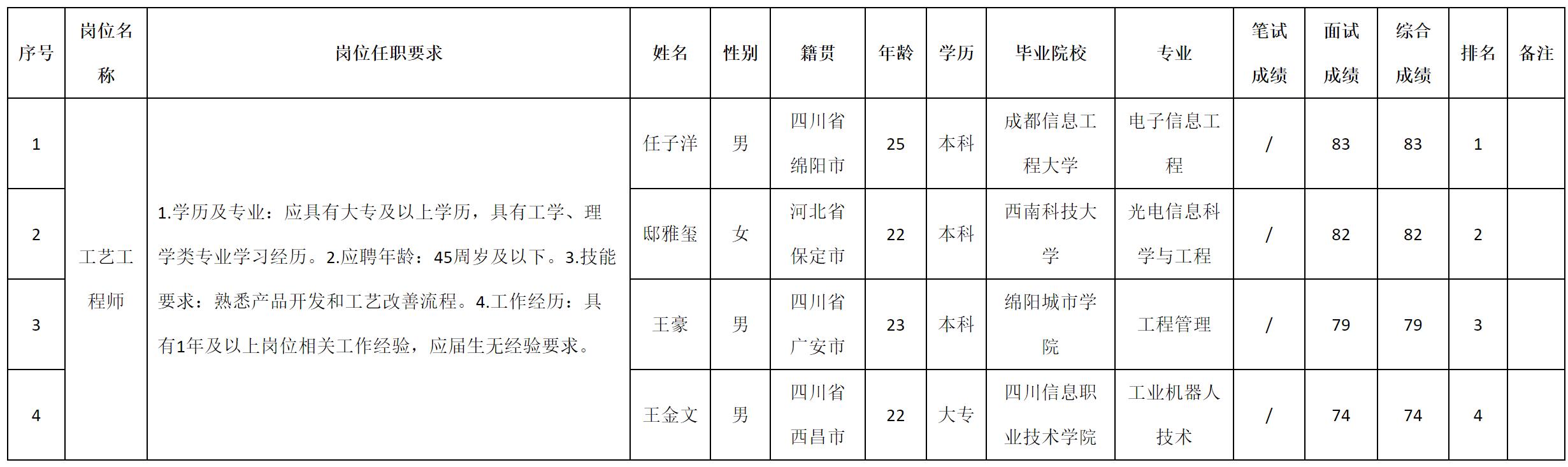 根據(jù)四川九華光子通信技術(shù)有限公司發(fā)布的招聘公告及招聘相關(guān)規(guī)定,現(xiàn)將測(cè)試成績(jī)予以公示。
